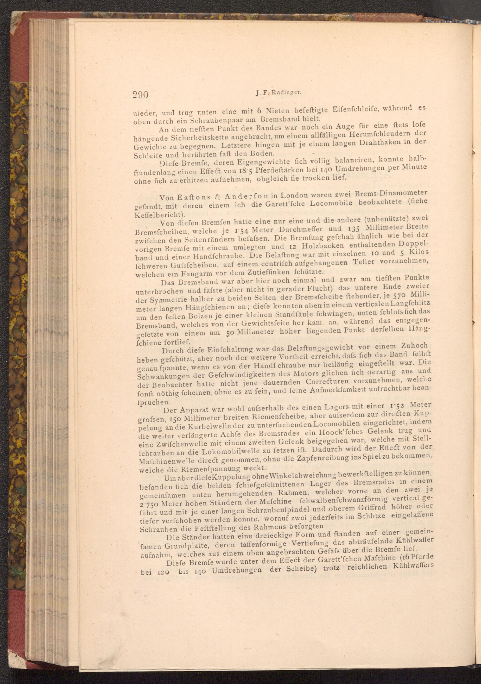 Von Eaftons& Ande: fon in London waren zwei Brems- Dinamometer. gefandt, mit deren einem ich die Garett'fche Locomobile beobachtete( fiehe Keffelbericht).