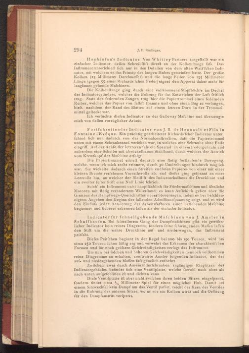 Indicator für fchnell gehende Mafchinen von J. Amsler in Schaffhaufen. Bei fchnellerem Gang der Dampfmafchinen gibt ein gewöhnlicher Indicator kein reines Diagramm, fondern feine fchwingenden Maffen laffen den Stift um die wahre Drucklinie auf und niederwogen, das Inftrument peitfcht.