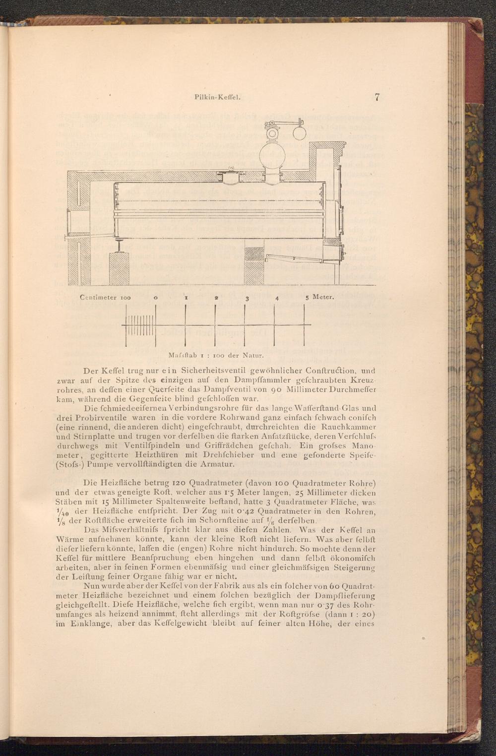 Das Mifsverhältnifs fpricht klar aus diefen Zahlen. Was der Keffel an Wärme aufnehmen könnte, kann der kleine Roft nicht liefern. Was aber felbft diefer liefern könnte, laffen die( engen) Rohre nicht hindurch. So mochte denn der Keffel für mittlere Beanfpruchung eben hingehen und dann felbft ökonomisch arbeiten, aber in feinen Formen ebenmäfsig und einer gleichmäfsigen Steigerung der Leiftung feiner Organe fähig war er nicht.