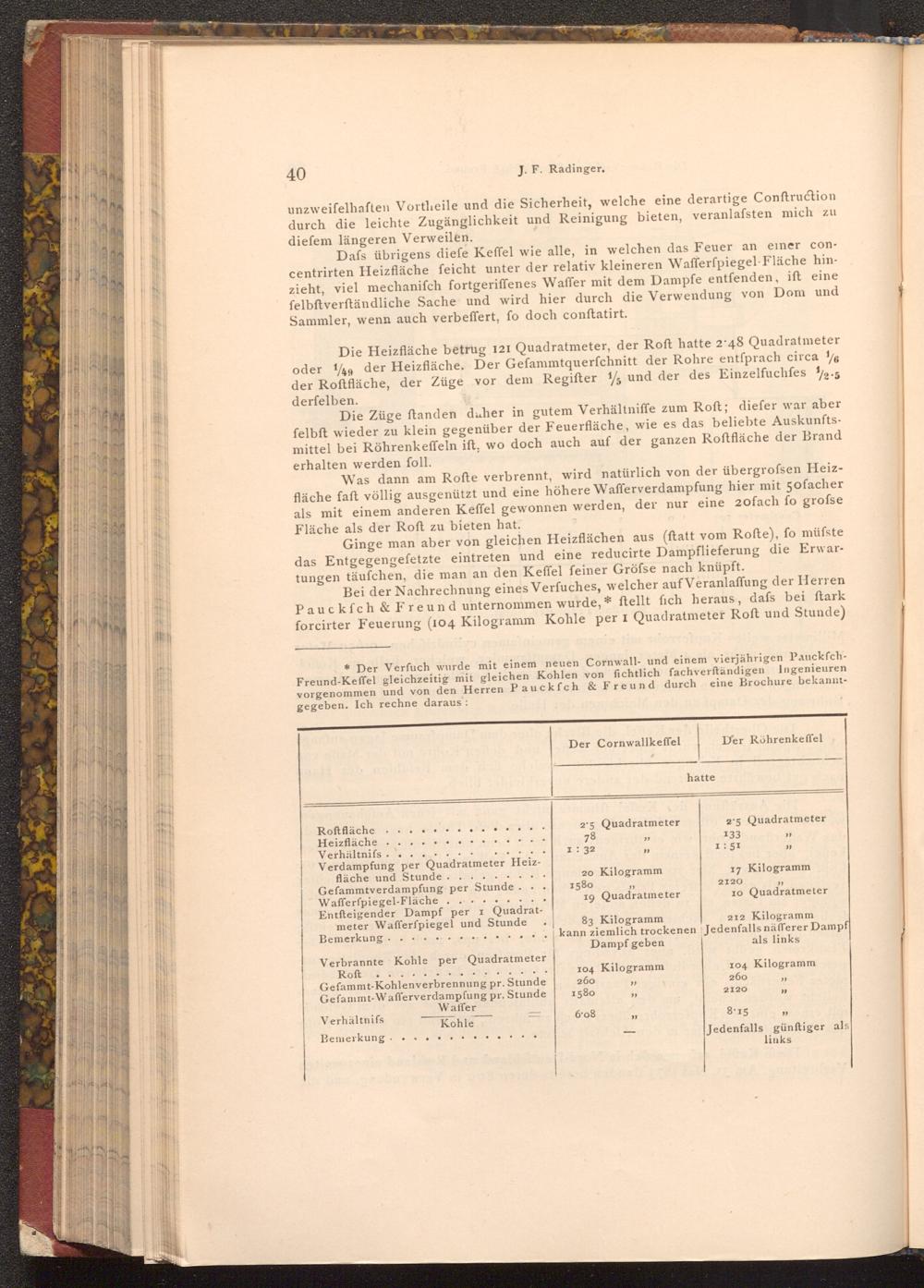 * Der Verfuch wurde mit einem neuen Cornwall- und einem vierjährigen PauckfchFreund- Keffel gleichzeitig mit gleichen Kohlen von fichtlich fachverständigen Ingenieuren eine Brochure bekanntvorgenommen und von den Herren Pauckfch& Freund durch gegeben. Ich rechne daraus: