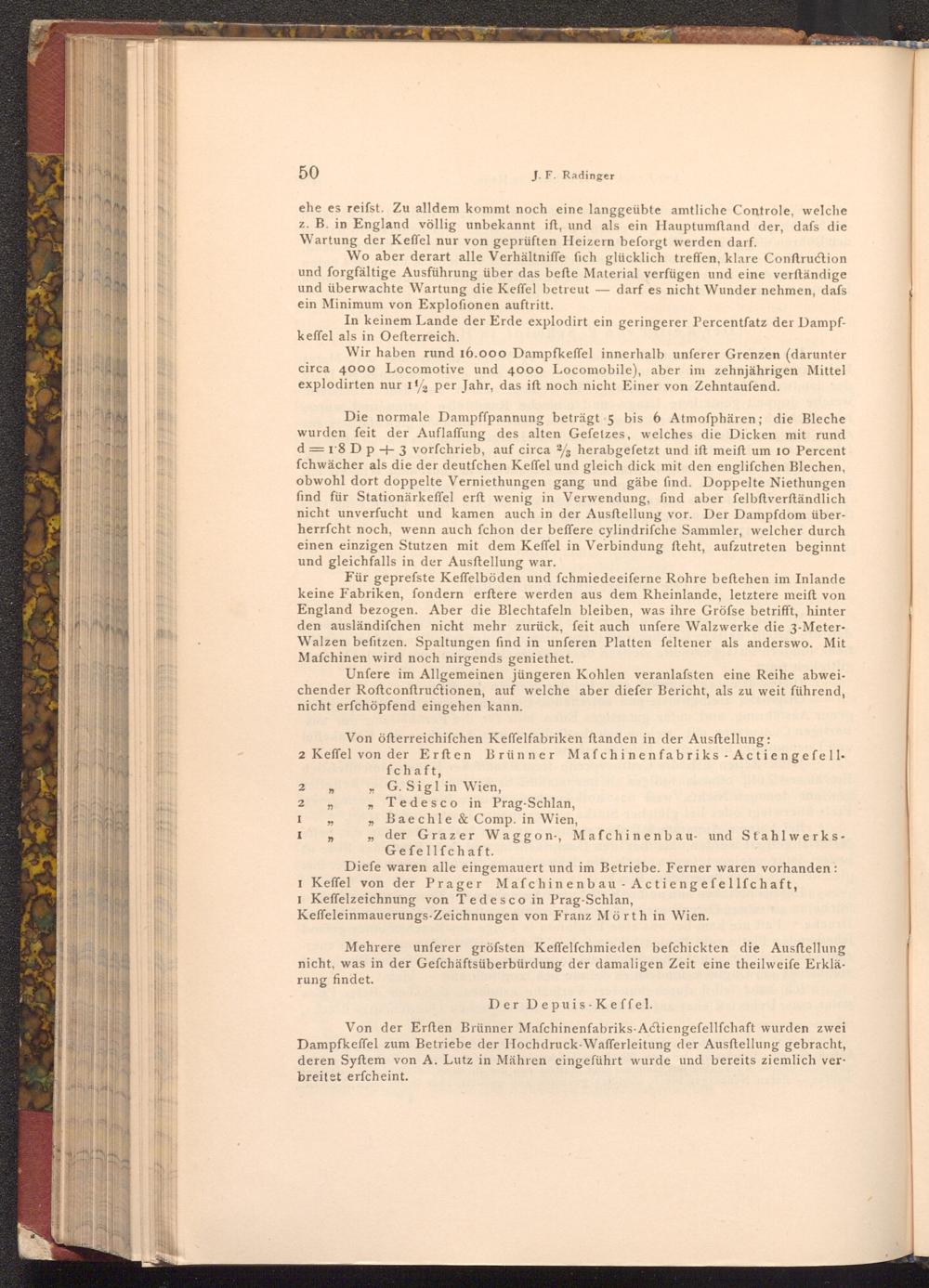 Von der Erften Brünner Mafchinenfabriks- Actiengeſellſchaft wurden zwei Dampfkeffel zum Betriebe der Hochdruck- Wafferleitung der Ausftellung gebracht, deren Syftem von A. Lutz in Mähren eingeführt wurde und bereits ziemlich verbreitet erfcheint.