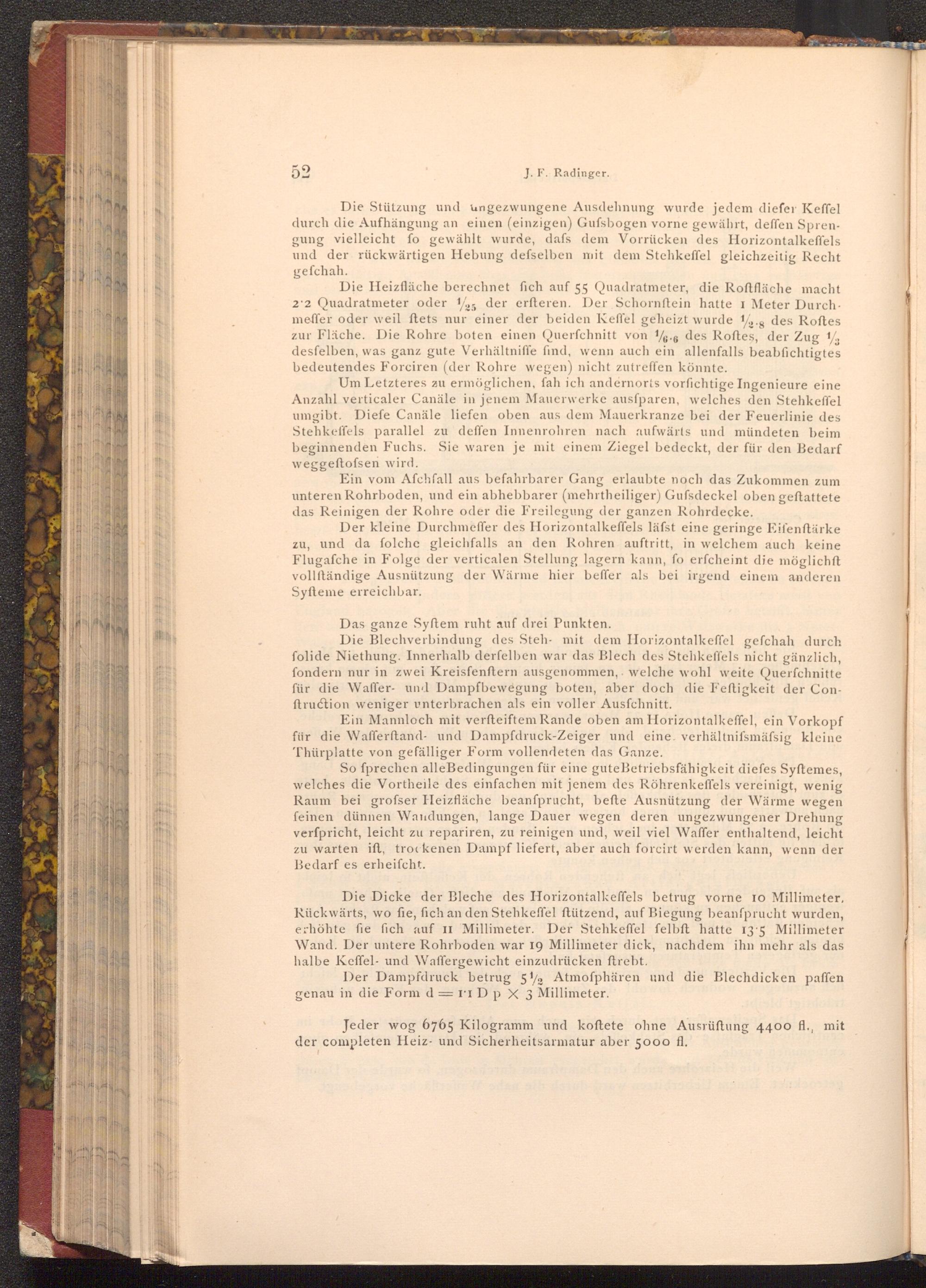 Jeder wog 6765 Kilogramm und koftete ohne Ausrüftung 4400 fl., mit der completen Heiz- und Sicherheitsarmatur aber 5000 fl.