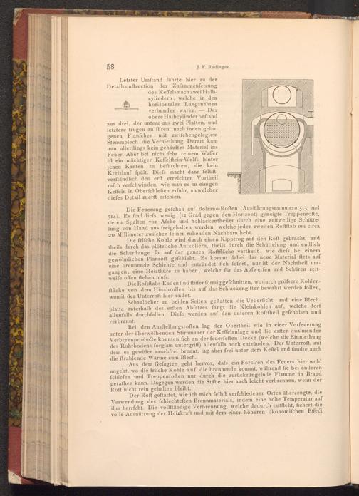 Der Roft geftattet, wie ich mich felbft verfchiedenen Ortes überzeugte, die Verwendung des ſchlechteften Brennmaterials, indem eine hohe Temperatur auf ihm herrfcht. Die vollſtändige Verbrennung, welche dadurch entsteht, fichert die volle Ausnützung der Heizkraft und mit dem einen höheren ökonomifchen Effect