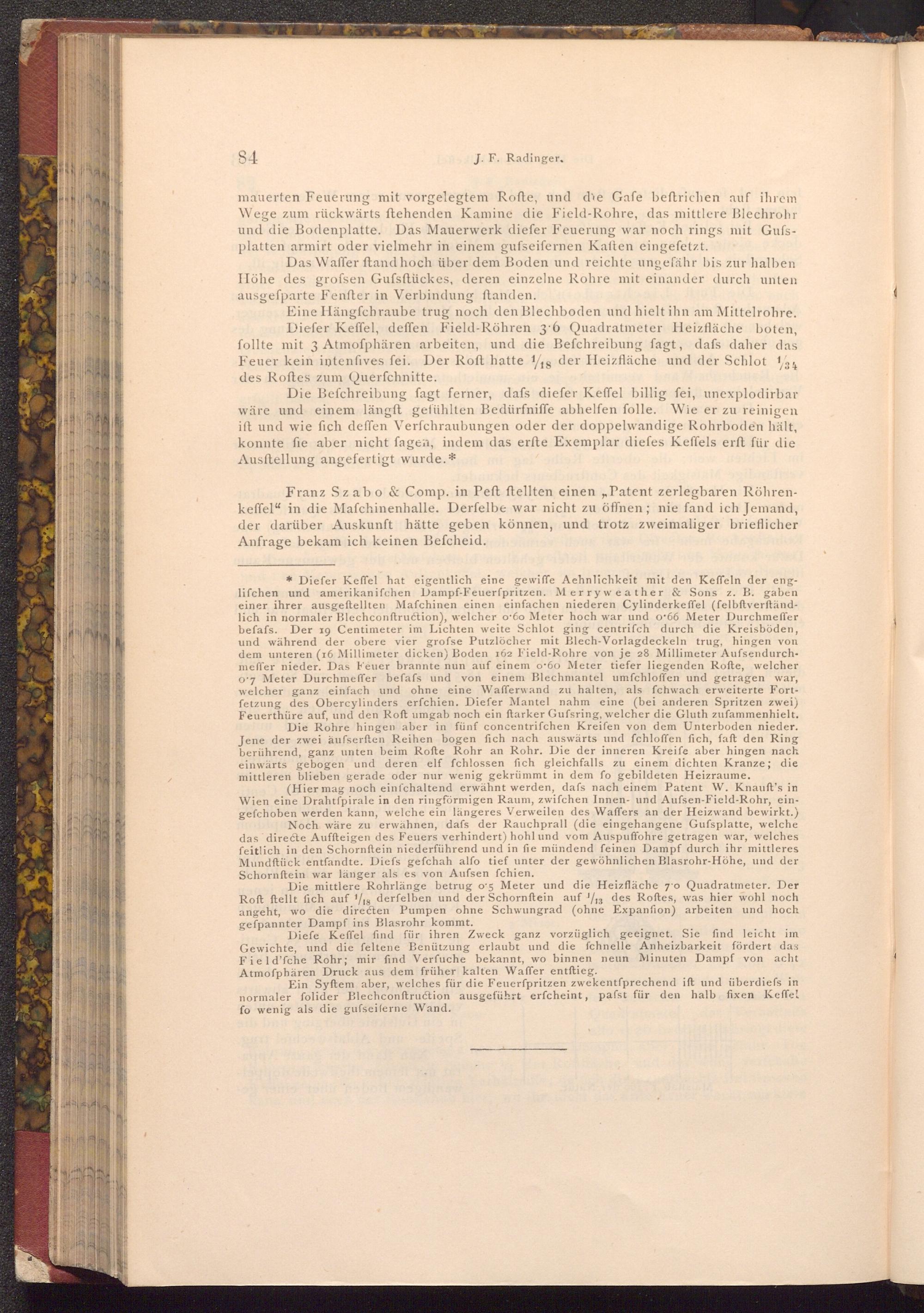 Franz Szabo& Comp. in Peft ftellten einen, Patent zerlegbaren Röhrenkeffel" in die Mafchinenhalle. Derfelbe war nicht zu öffnen; nie fand ich Jemand, der darüber Auskunft hätte geben können, und trotz zweimaliger brieflicher Anfrage bekam ich keinen Befcheid.