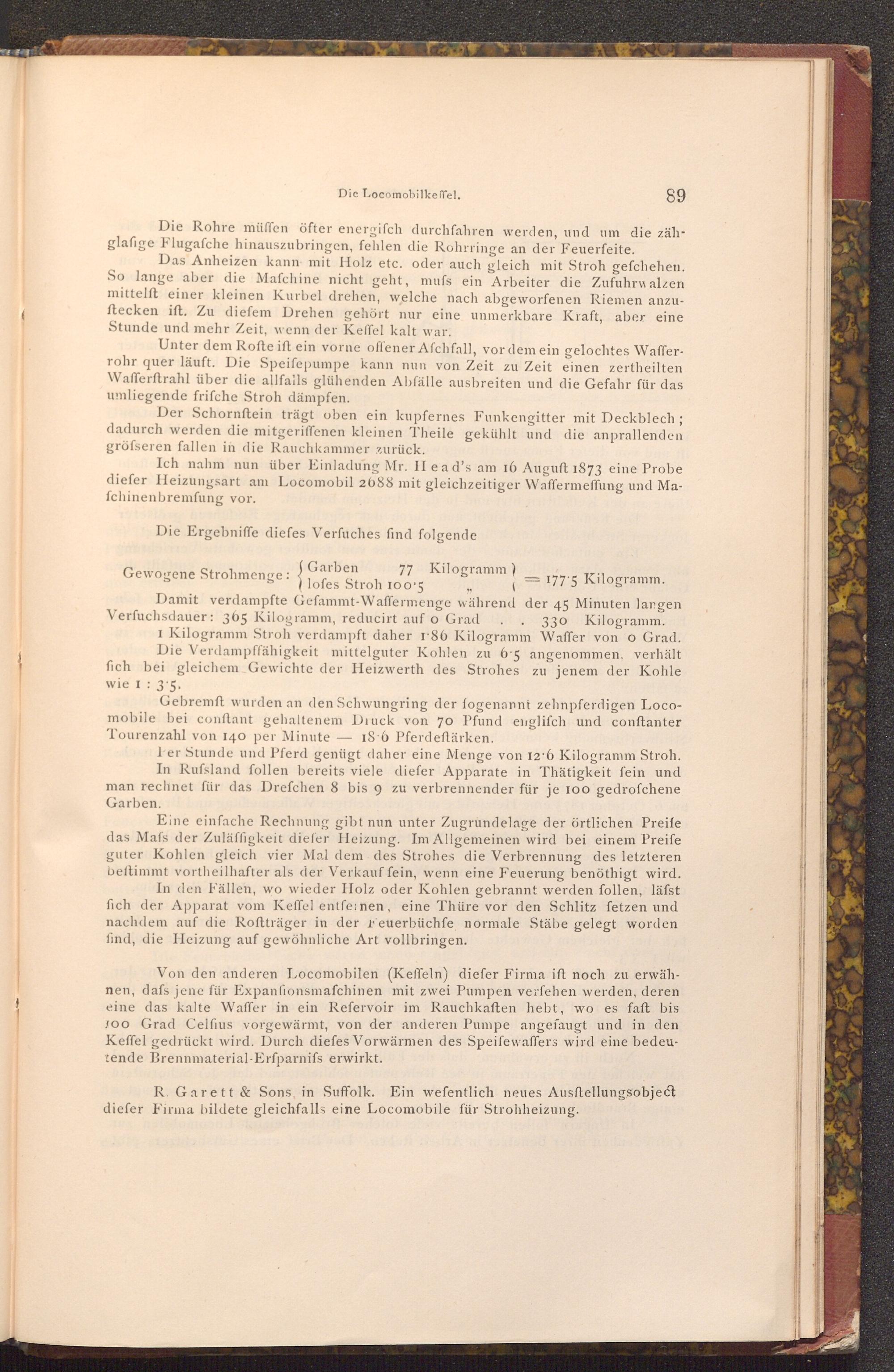 R. Garett& Sons, in Suffolk. Ein wefentlich neues Ausftellungsobject diefer Firma bildete gleichfalls eine Locomobile für Strohheizung.