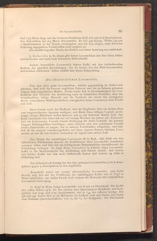 Ausgeftellt waren nur wenige öfterreichifche Locomobile, und diefer Bericht mag fich mit der Vorführung der einfchlägigen Keffel von G. Sigl in Wien befcheiden, aus deffen Fabrik noch weitaus die Mehrzahl aller inländifchen Locomobile hervorging.