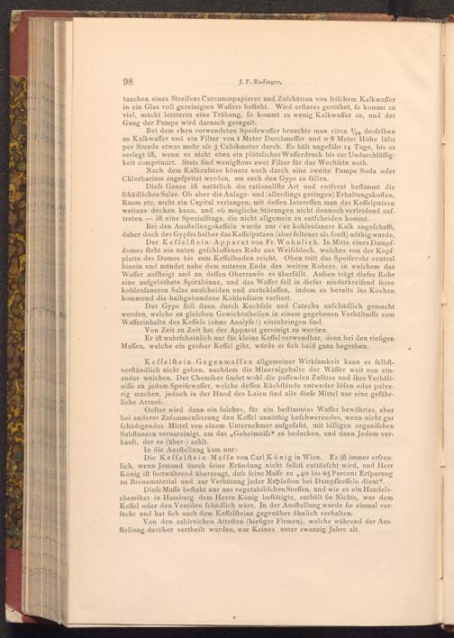 Diefs Ganze ift natürlich die rationellfte Art und entfernt beftimmt die fchädlichen Salze. Ob aber die Anlage- und( allerdings geringen) Erhaltungskoften, Raum etc. nicht ein Capital verlangen, mit deffen Intereffen man das Keffelputzen weitaus decken kann, und ob mögliche Störungen nicht dennoch verleidend auftreten iſt eine Specialfrage, die nicht allgemein zu entfcheiden kommt.