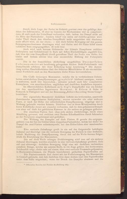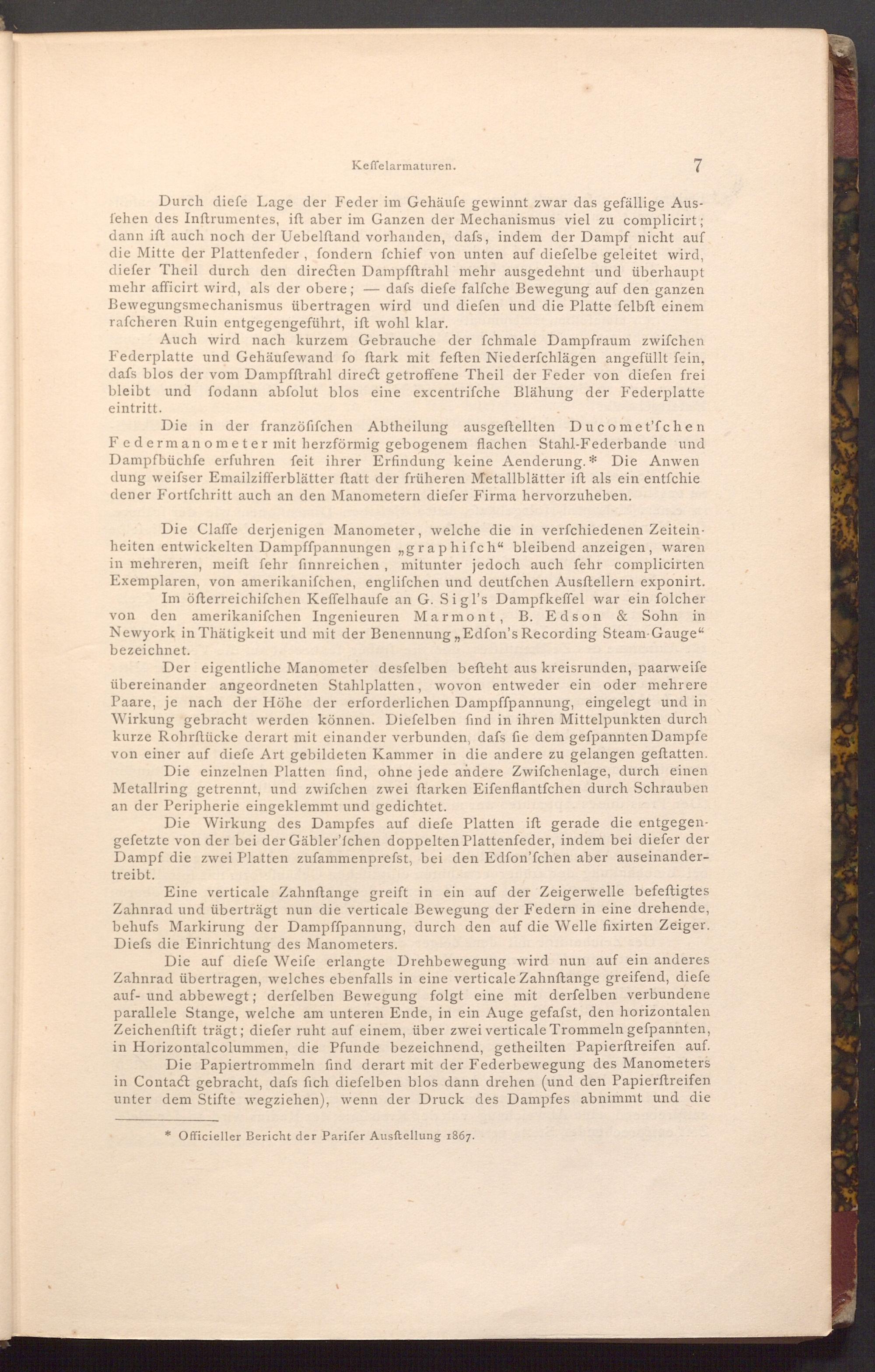 Im öfterreichifchen Keffelhaufe an G. Sigl's Dampfkeffel war ein folcher den amerikanifchen Ingenieuren Marmont, B. Edson& Sohn in Newyork in Thätigkeit und mit der Benennung ,, Edfon's Recording Steam- Gauge"
