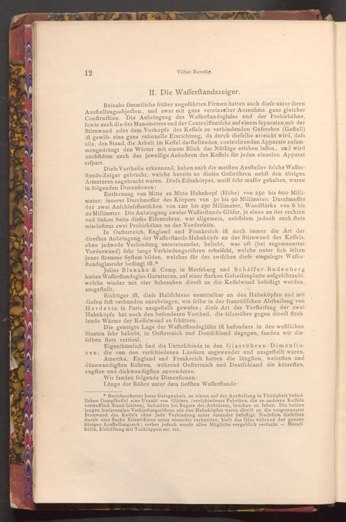 Julius Blancke& Comp. in Merfeburg und Schäffer- Budenberg hatten Wafferftandsglas- Garnituren, auf einer ftarken Gufseifenplatte aufgefchraubt, welche wieder mit vier Schrauben direct an die Keffelwand befeftigt werden, ausgeftellt.
