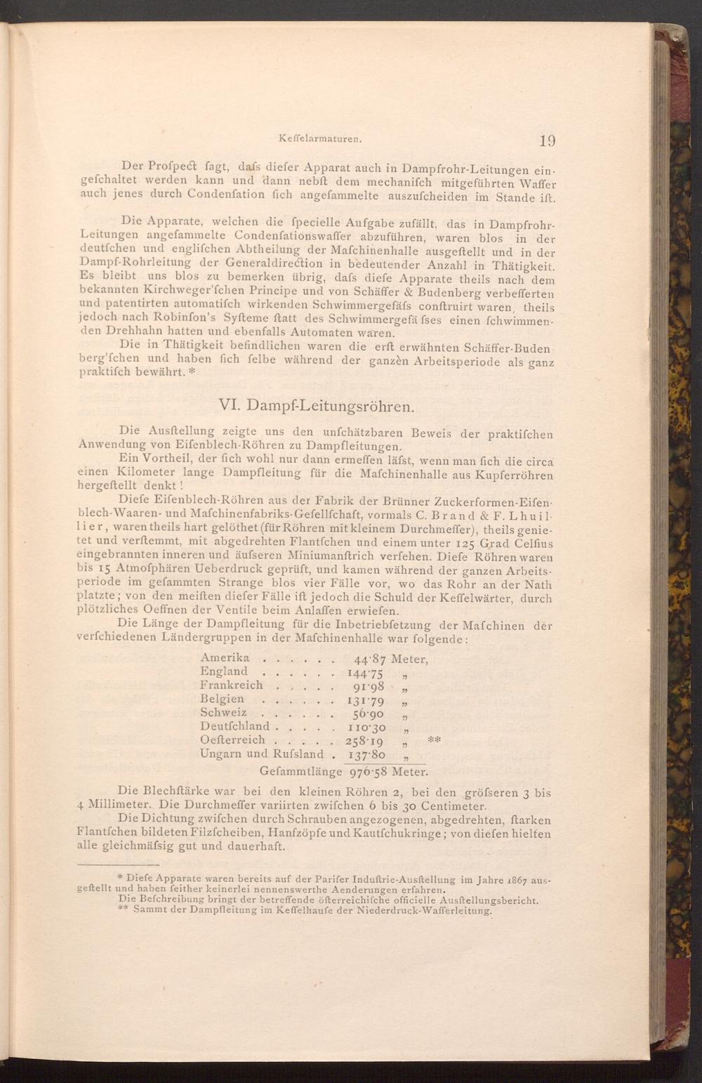 Die Befchreibung bringt der betreffende öfterreichifche officielle Ausstellungsbericht. ** Sammt der Dampfleitung im Keffelhaufe der Niederdruck- Wafferleitung.