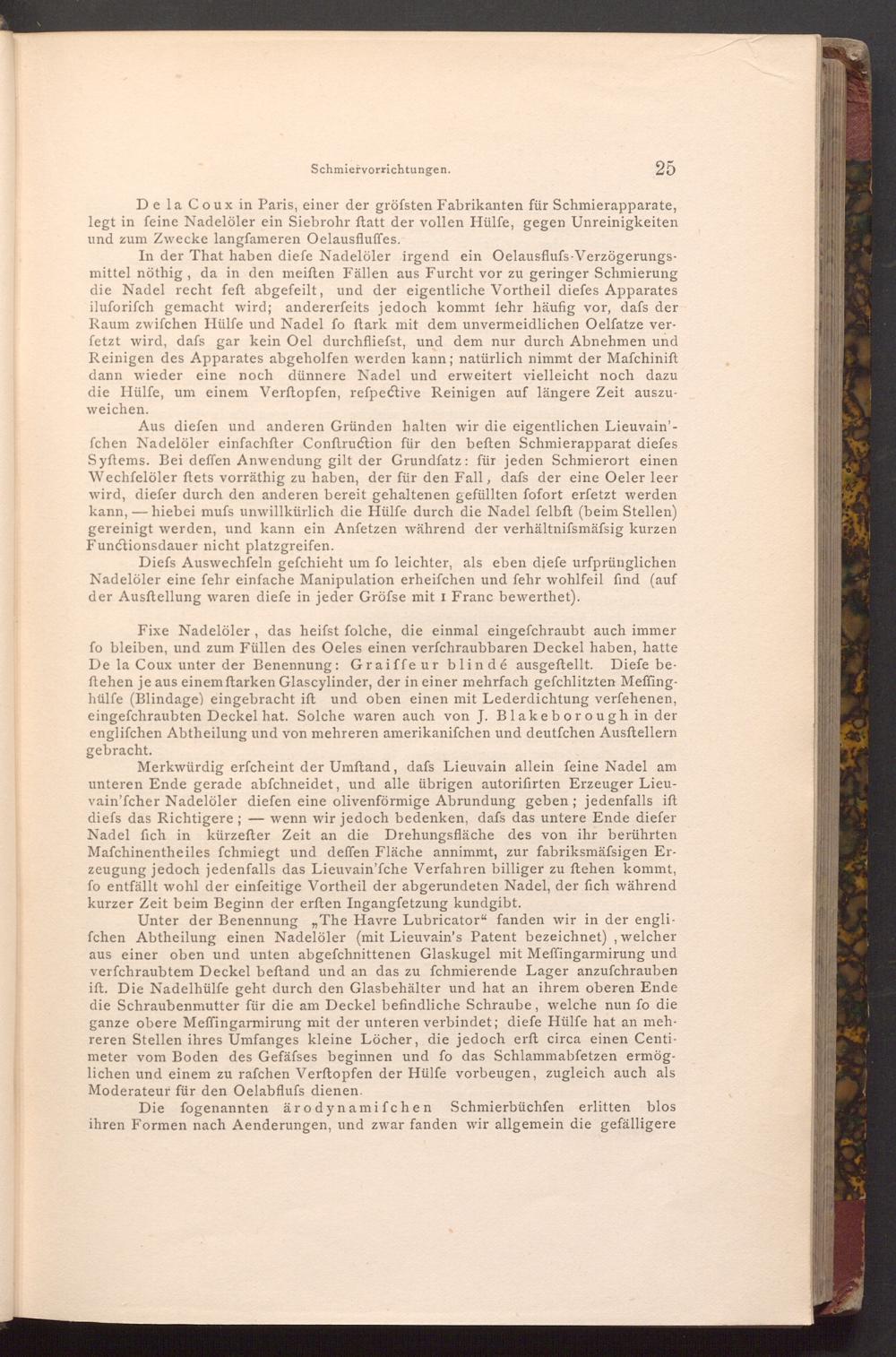 De la Coux in Paris, einer der gröfsten Fabrikanten für Schmierapparate, legt in feine Nadelöler ein Siebrohr ftatt der vollen Hülfe, gegen Unreinigkeiten und zum Zwecke langfameren Oelausfluffes.