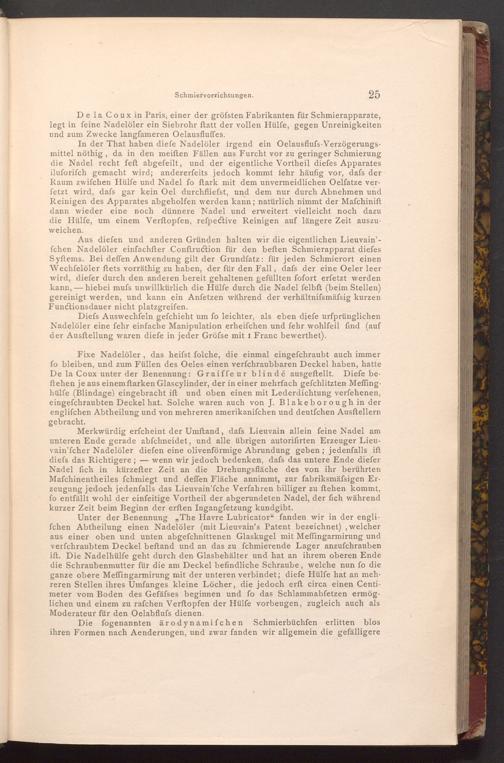 Fixe Nadelöler, das heifst folche, die einmal eingefchraubt auch immer fo bleiben, und zum Füllen des Oeles einen verfchraubbaren Deckel haben, hatte De la Coux unter der Benennung: Graiffeur blindé ausgeftellt. Diefe beftehen je aus einem ftarken Glascylinder, der in einer mehrfach gefchlitzten Meffinghülfe( Blindage) eingebracht ift und oben einen mit Lederdichtung verfehenen, eingefchraubten Deckel hat. Solche waren auch von J. Blake borough in der englifchen Abtheilung und von mehreren amerikanifchen und deutfchen Ausftellern gebracht.