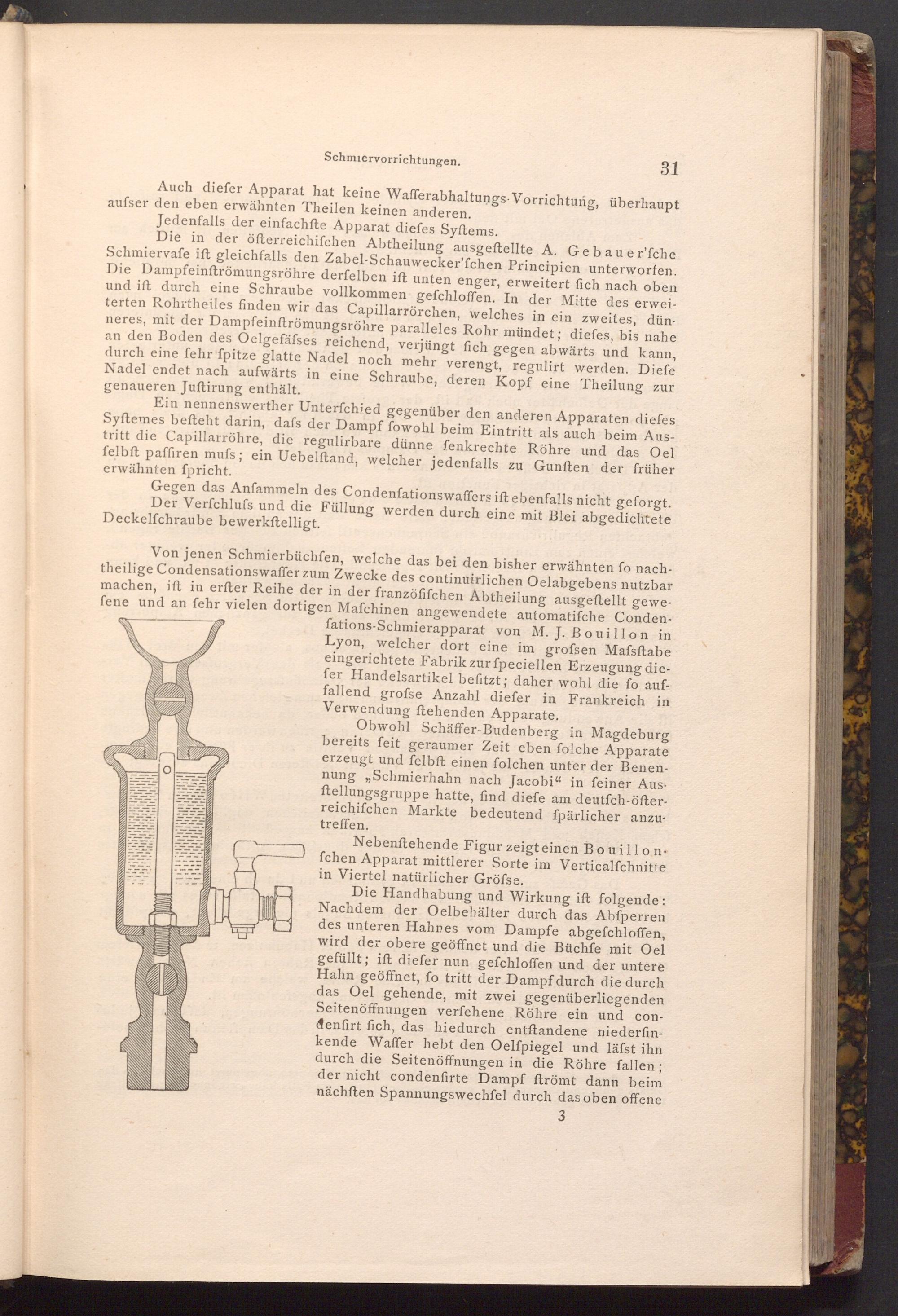 fations- Schmierapparat von M. J. Bouillon in Lyon, welcher dort eine im grofsen Mafsftabe eingerichtete Fabrik zur fpeciellen Erzeugung diefer Handelsartikel befitzt; daher wohl die fo auffallend grofse Anzahl diefer in Frankreich in Verwendung ftehenden Apparate.