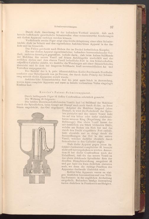 Der Bericht der k. k. priv. öfterreichifchen Kaifer- Ferdinands- Nordbahn conftatirt eine Oelerfparnifs von 50 Percent, das durch diefes Princip der Schmierung mittelft diefes Apparates erzielt wurde.