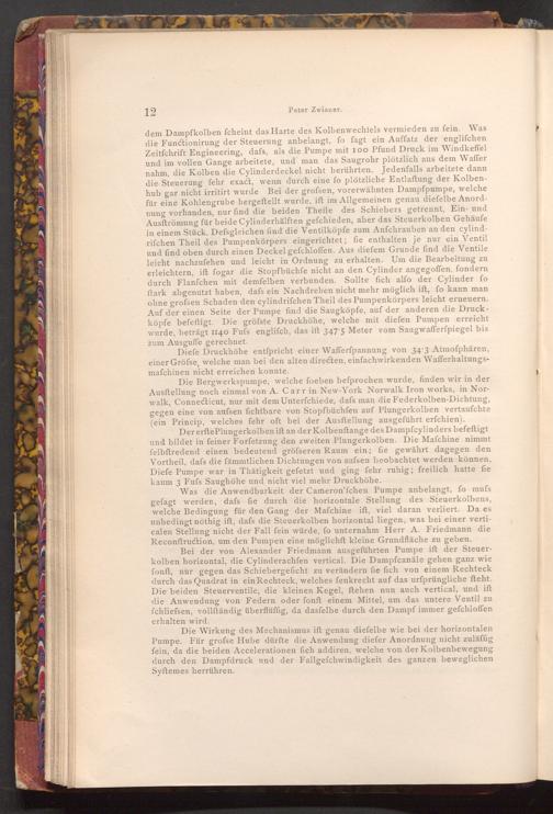 Diefe Druckhöhe entſpricht einer Wafferfpannung von 34'3 Atmoſphären, einer Gröfse, welche man bei den alten directen, einfachwirkenden Wafferhaltungsmafchinen nicht erreichen konnte.