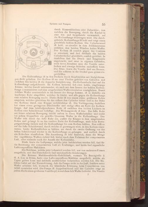 Diefe, fowie die Luftpumpe, welche jetzt befchrieben werden foll, find für die Benützung der comprimirten Luft als Kraftträger, und beide find eigentliche Luftcompreffions- Mafchinen.