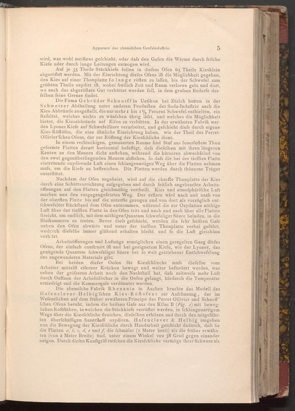 Arbeitsöffnungen und Luftzüge ermöglichen einen geregelten Gang diefes Ofens, der einfach conftruirt ift und bei geeignetem Kiefe, wie der Lyoner, das genügende Quantum fchwefeliger Säure bei fo weit getriebener Entfchwefelung des angewendeten Materials gibt.