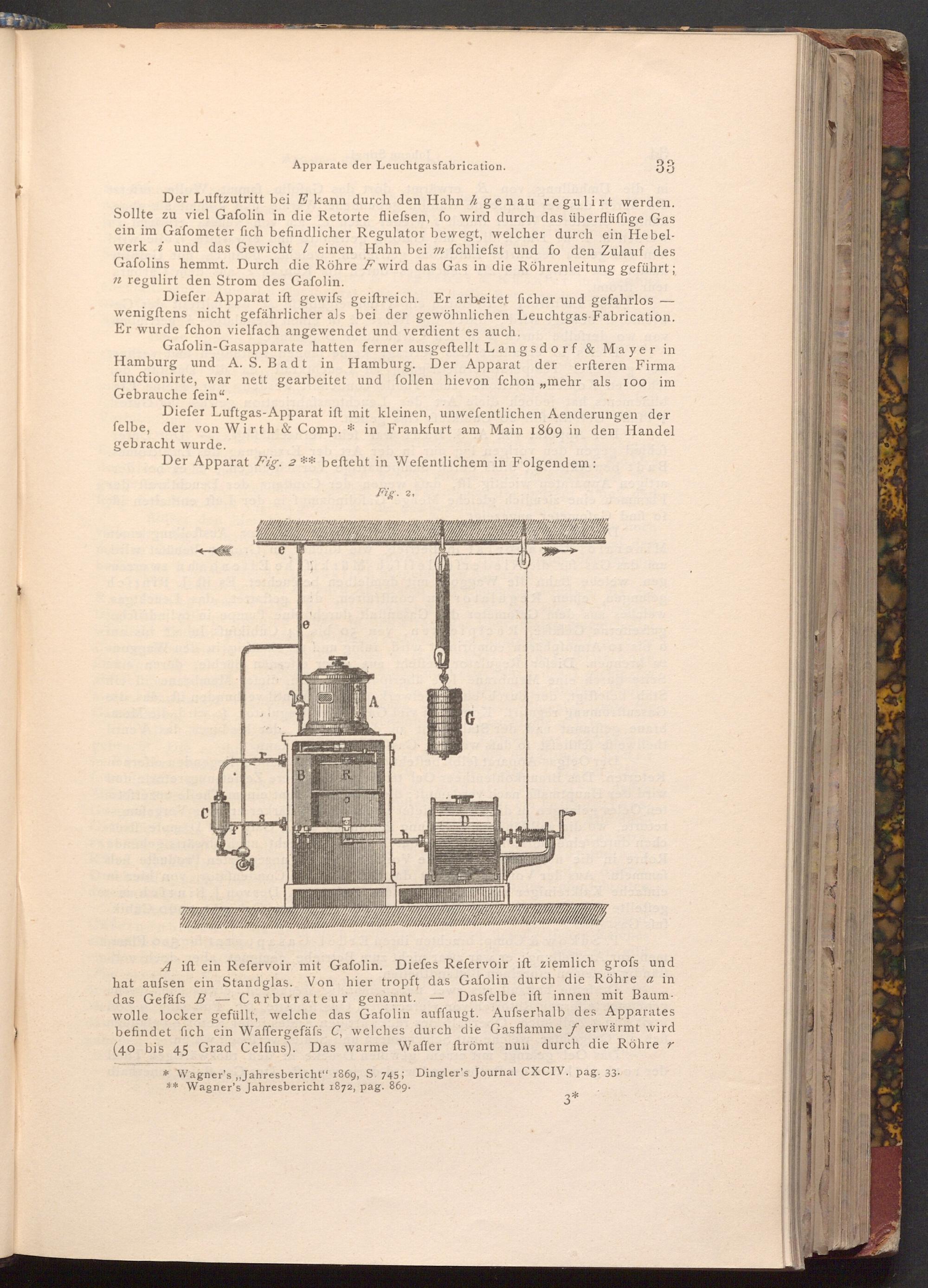 Diefer Luftgas- Apparat ift mit kleinen, unwefentlichen Aenderungen der felbe, der von Wirth& Comp. in Frankfurt am Main 1869 in den Handel gebracht wurde.