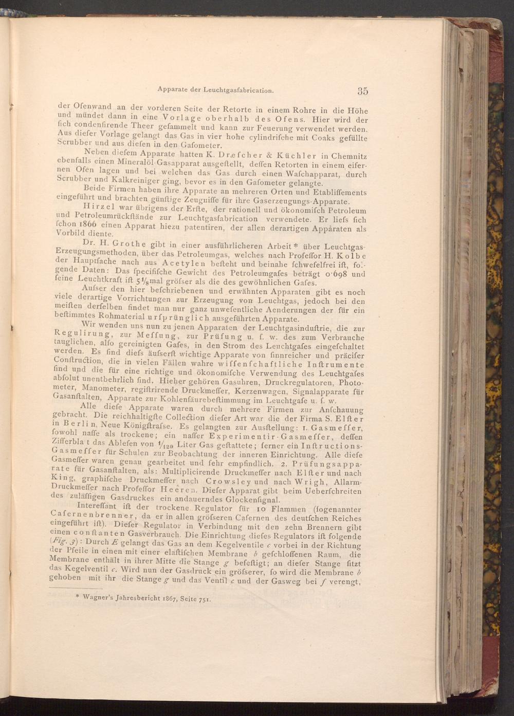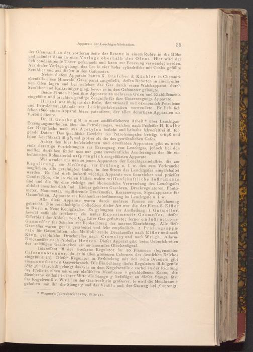 Hirzel war übrigens der Erfte, der rationell und ökonomisch Petroleum und Petroleumrückstände zur Leuchtgasfabrication verwendete. Er liefs fich fchon 1866 einen Apparat hiezu patentiren, der allen derartigen Apparaten als Vorbild diente.