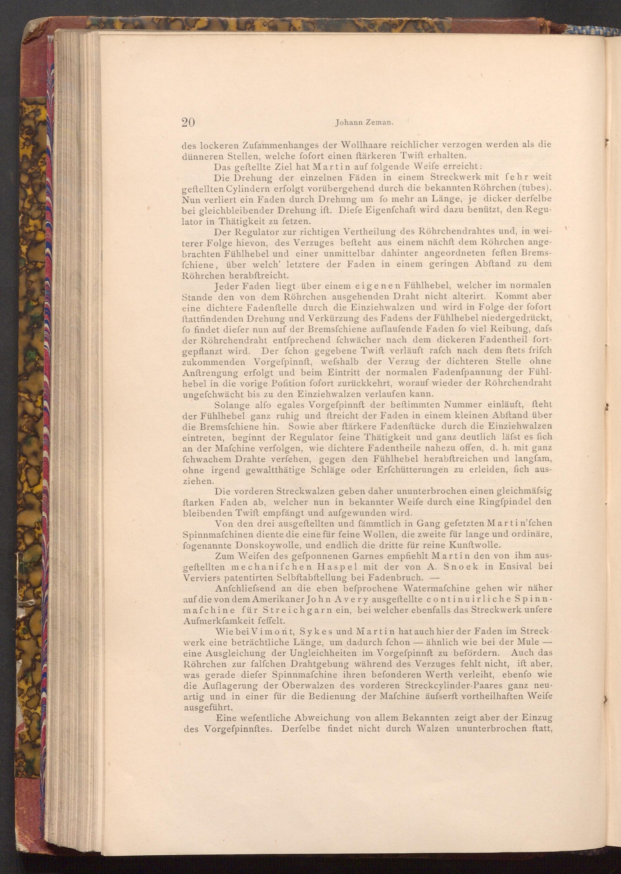 Anfchliefsend an die eben befprochene Watermafchine gehen wir näher auf die von dem Amerikaner John Avery ausgeftellte continuirliche Spinnmafchine für Streichgarn ein, bei welcher ebenfalls das Streckwerk unfere Aufmerkſamkeit feffelt.