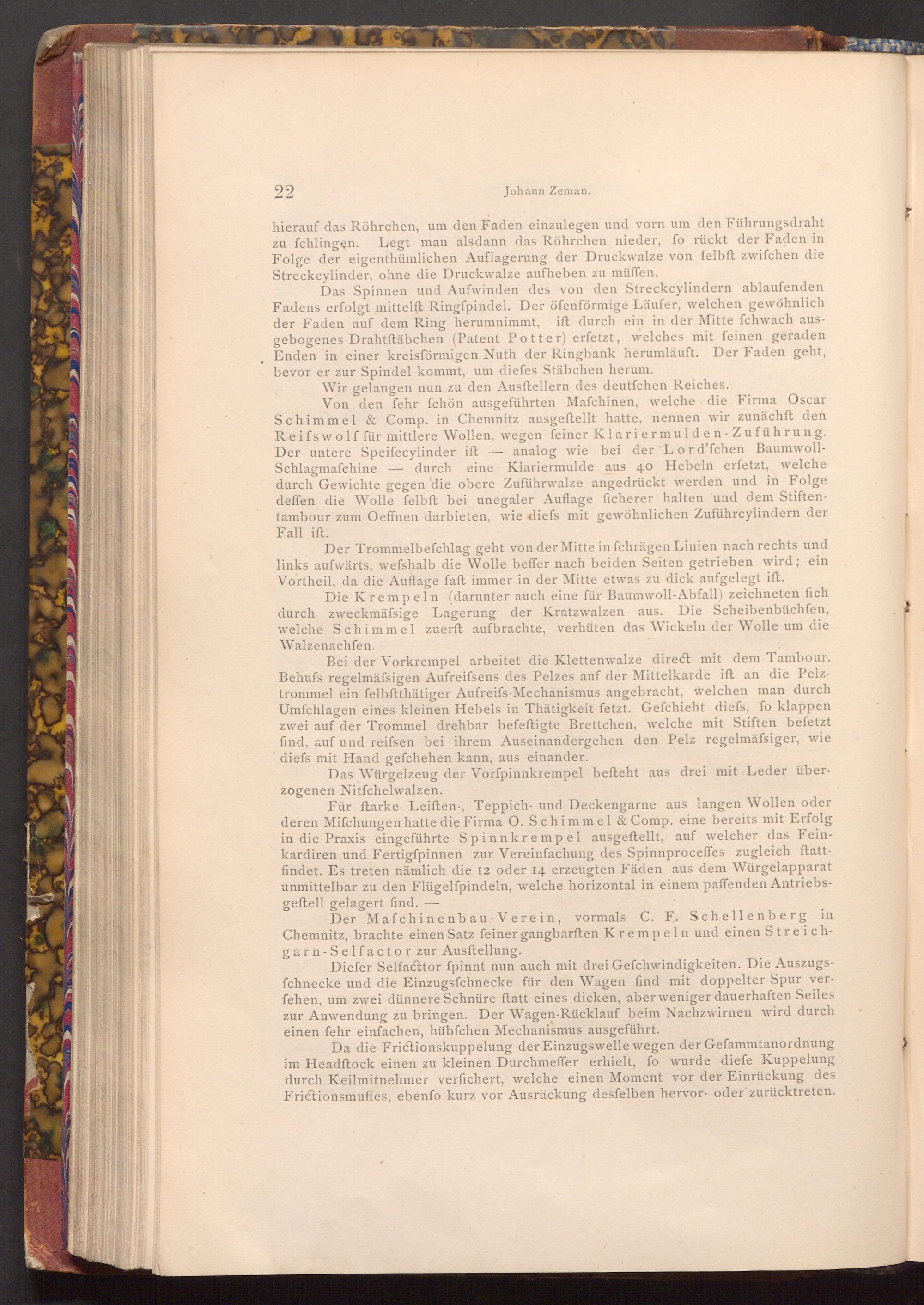 Der Mafchinenbau- Verein, vormals C. F. Schellenberg in Chemnitz, brachte einen Satz feiner gangbarften Krempeln und einen Streichgarn- Selfactor zur Ausftellung.