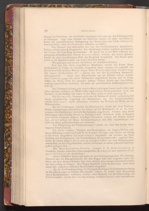 Die Krempeln( darunter auch eine für Baumwoll- Abfall) zeichneten fich Die Scheibenbüchfen, durch zweckmäfsige Lagerung der Kratzwalzen aus. welche Schimmel zuerft aufbrachte, verhüten das Wickeln der Wolle um die Walzenachfen.