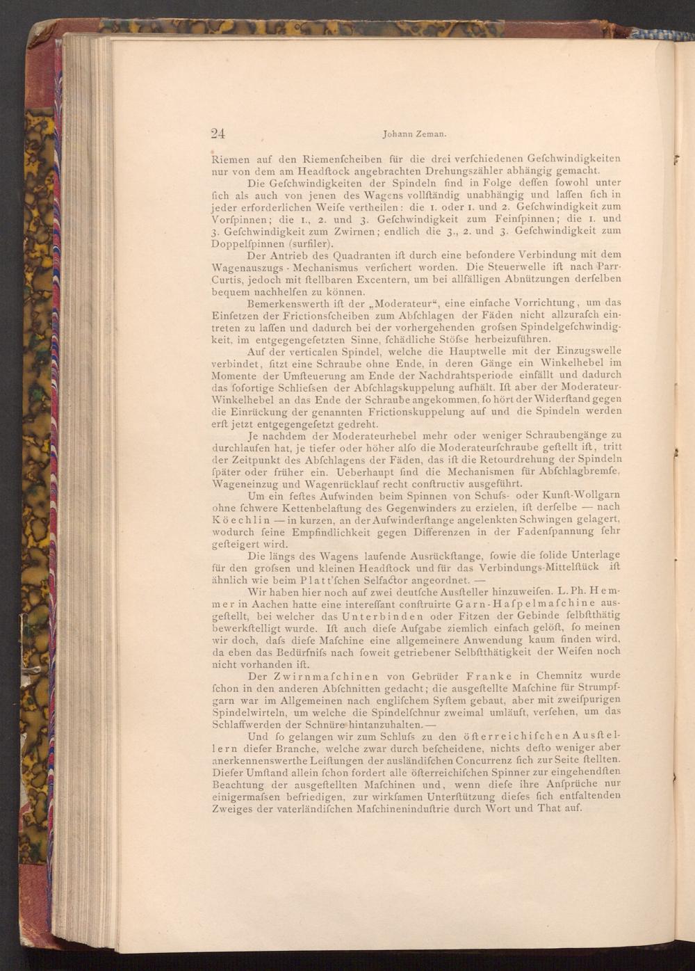 Und fo gelangen wir zum Schlufs zu den öfterreichifchen Ausftellern diefer Branche, welche zwar durch befcheidene, nichts defto weniger aber anerkennenswerthe Leiftungen der ausländifchen Concurrenz fich zur Seite ftellten. Diefer Umftand allein fchon fordert alle öfterreichifchen Spinner zur eingehendften Beachtung der ausgeftellten Mafchinen und, wenn diefe ihre Anfprüche nur einigermassen befriedigen, zur wirkfamen Unterſtützung diefes fich entfaltenden Zweiges der vaterländifchen Mafchineninduftrie durch Wort und That auf.