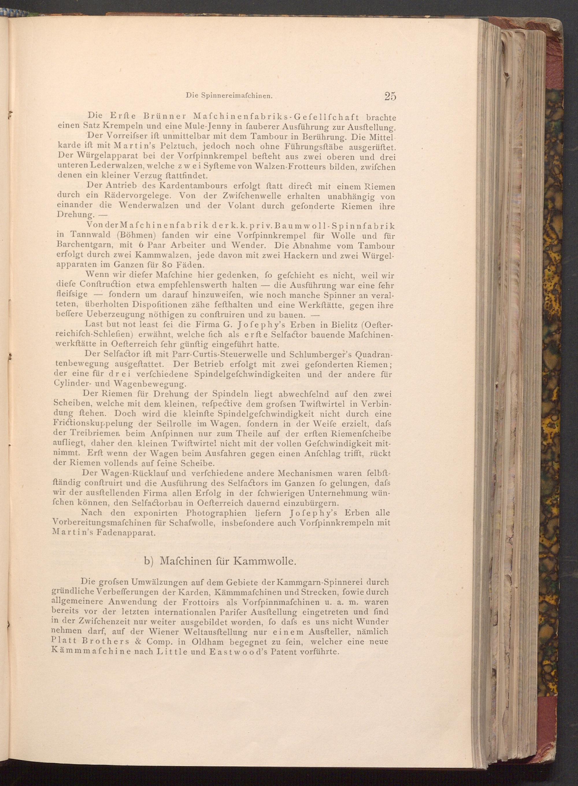 Last but not least fei die Firma G. Jofephy's Erben in Bielitz( Oefterreichifch- Schlefien) erwähnt, welche fich als erfte Selfactor bauende Mafchinenwerkstätte in Oefterreich fehr günftig eingeführt hatte.