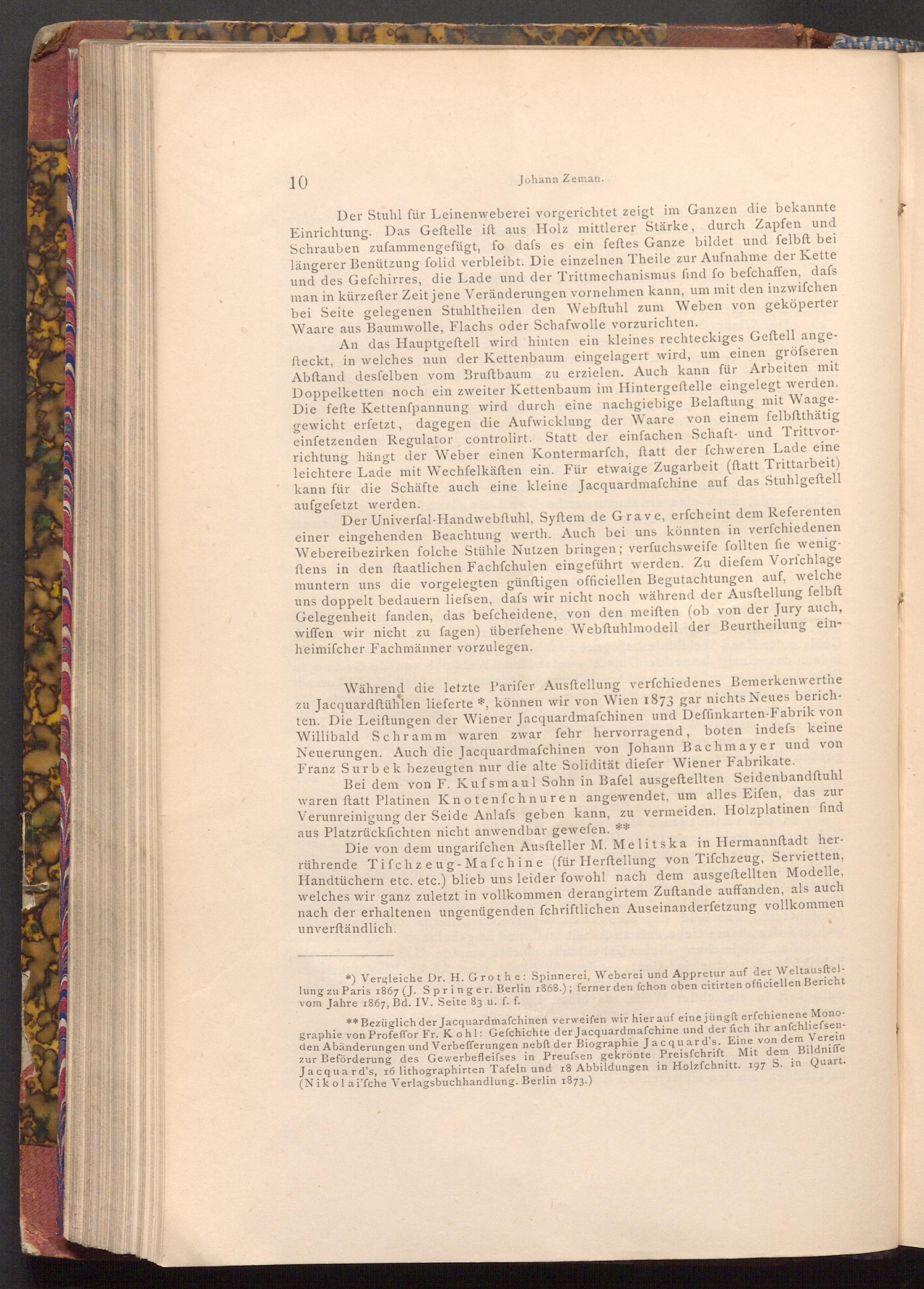 *) Vergleiche Dr. H. Grothe: Spinnerei, Weberei und Appretur auf der Weltausftellung zu Paris 1867( J. Springer. Berlin 1868.); ferner den fchon oben citirten officiellen Bericht vom Jahre 1867, Bd. IV. Seite 83 u. f. f.
