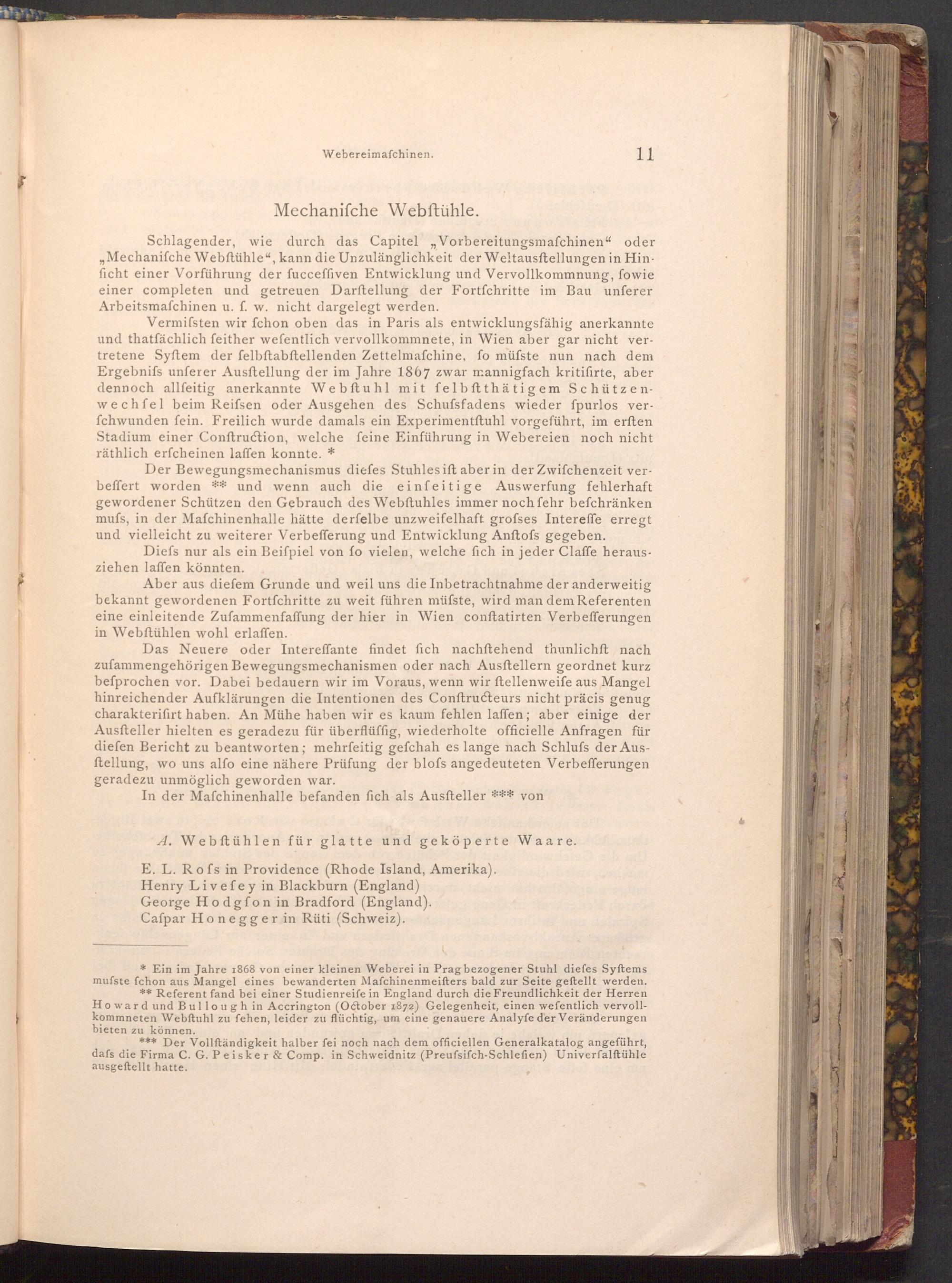 ** Referent fand bei einer Studienreife in England durch die Freundlichkeit der Herren Howard und Bullough in Accrington( October 1872) Gelegenheit, einen wefentlich vervollkommneten Webftuhl zu fehen, leider zu flüchtig, um eine genauere Analyfe der Veränderungen bieten zu können.