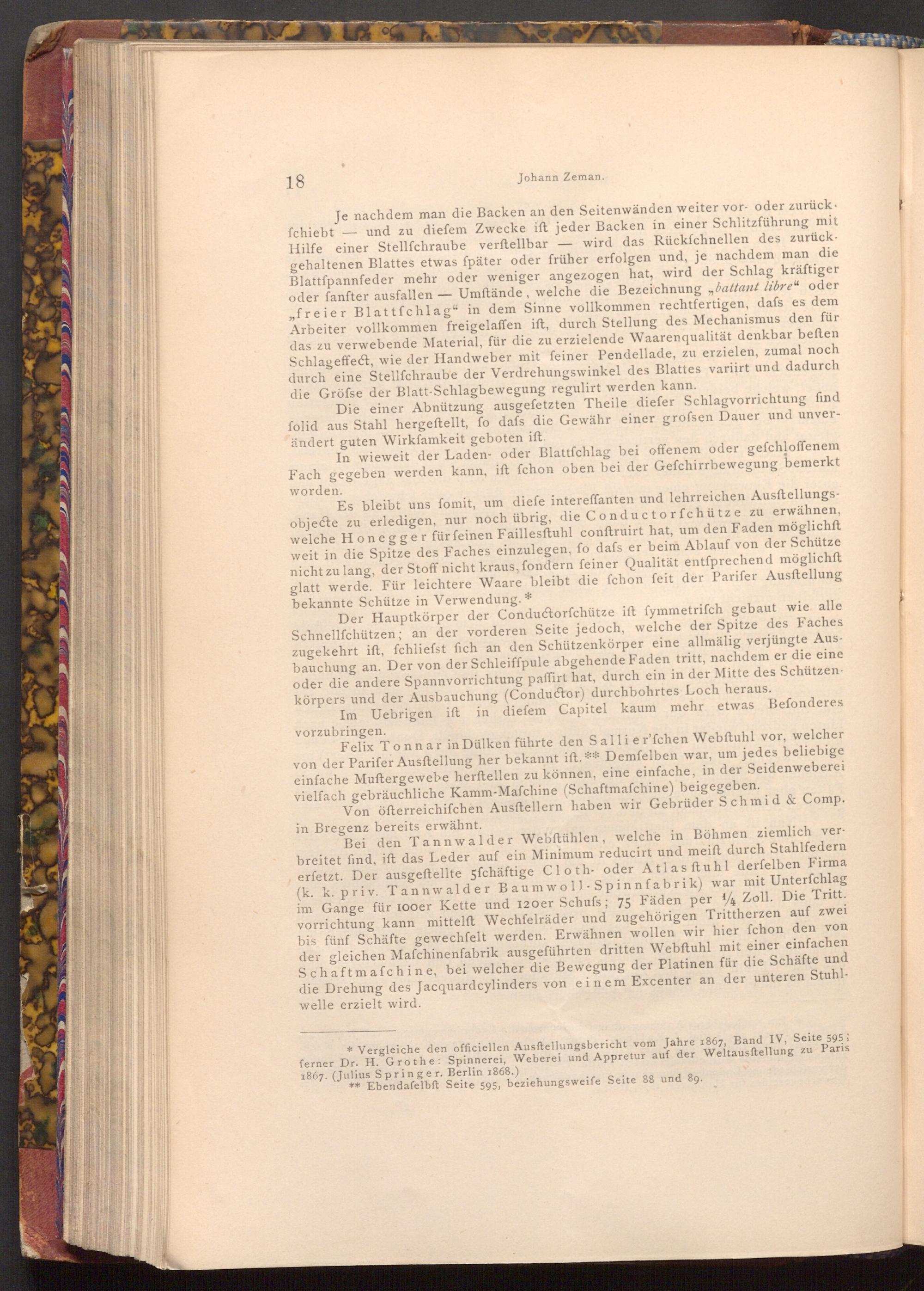 * Vergleiche den officiellen Ausstellungsbericht vom Jahre 1867, Band IV, Seite 595; ferner Dr. H. Grothe: Spinnerei, Weberei und Appretur auf der Weltausftellung zu Paris 1867.( Julius Springer. Berlin 1868.)