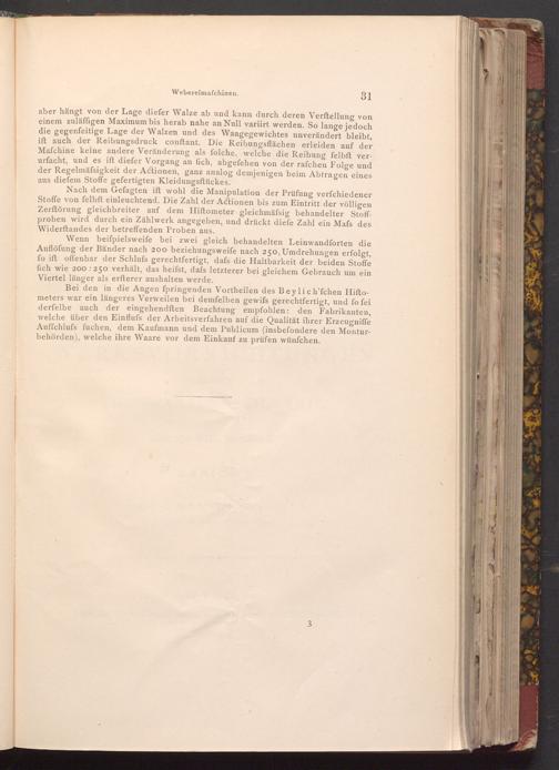 Wenn beifpielsweife bei zwei gleich behandelten Leinwandforten die Auflöfung der Bänder nach 200 beziehungsweife nach 250, Umdrehungen erfolgt, fo ift offenbar der Schlufs gerechtfertigt, dafs die Haltbarkeit der beiden Stoffe fich wie 200: 250 verhält, das heifst, dafs letzterer bei gleichem Gebrauch um ein Viertel länger als erfterer aushalten werde.