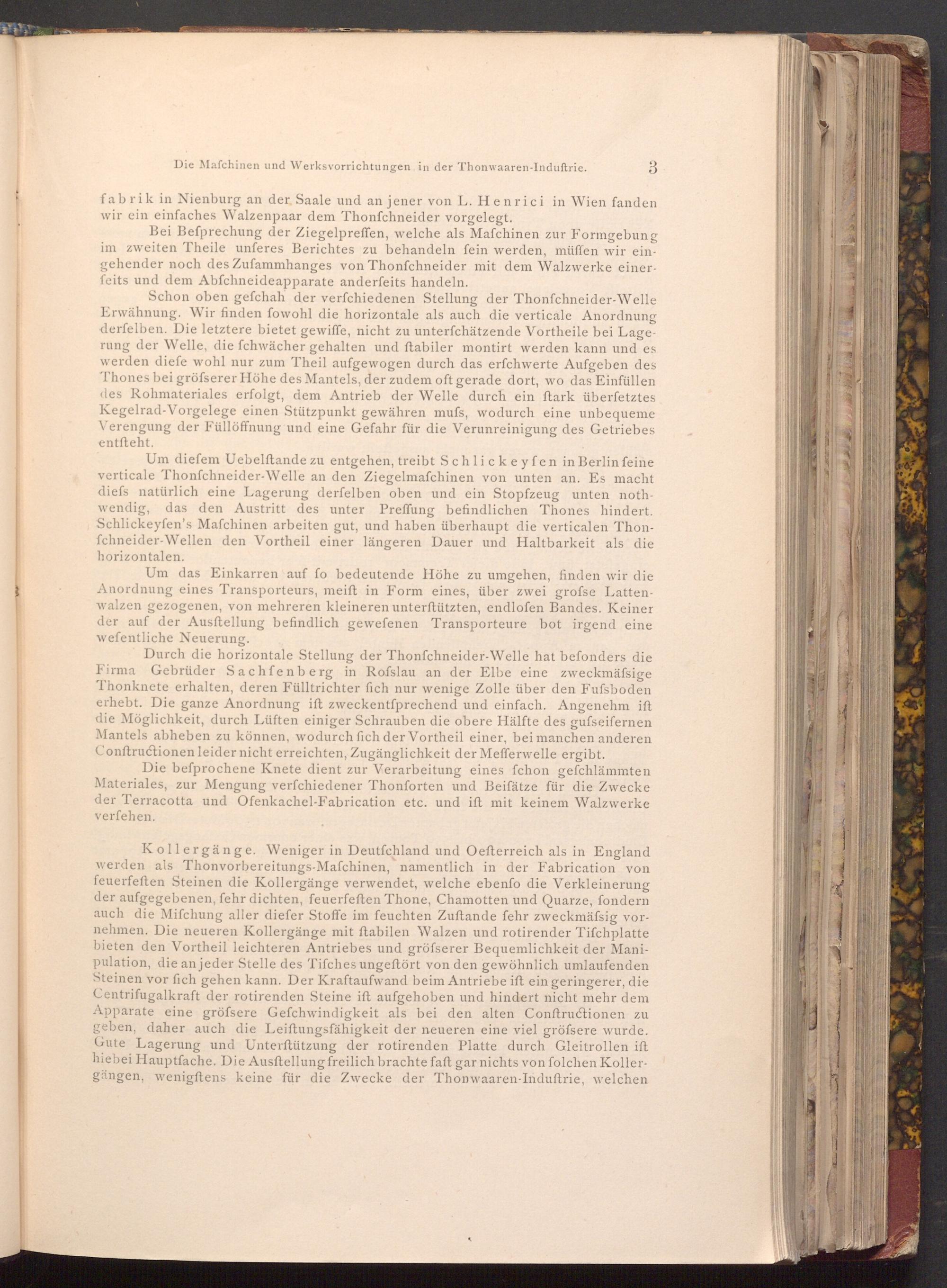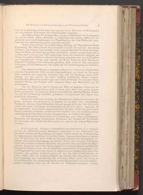 fabrik in Nienburg an der Saale und an jener von L. Henrici in Wien fanden wir ein einfaches Walzenpaar dem Thonfchneider vorgelegt.