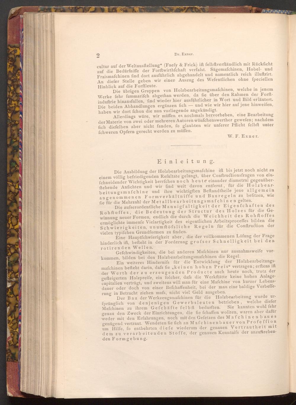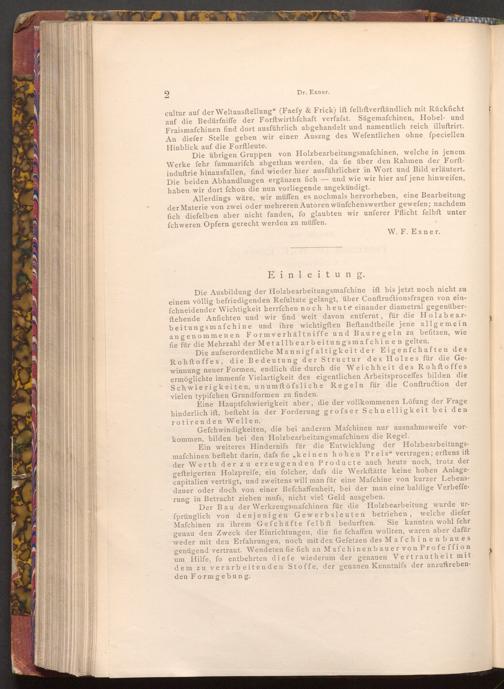 Die Ausbildung der Holzbearbeitungsmafchine ift bis jetzt noch nicht zu einem völlig befriedigenden Refultate gelangt, über Conftructionsfragen von einfchneidender Wichtigkeit herrfchen noch heute einander diametral gegenüberftehende Anfichten und wir find weit davon entfernt, für die Holzbear beitungsmaschine und ihre wichtigften Beftandtheile jene allgemein angenommenen Formverhältniffe und Bauregeln zu befitzen, wie fie für die Mehrzahl der Metallbearbeitungsmafchinen gelten.