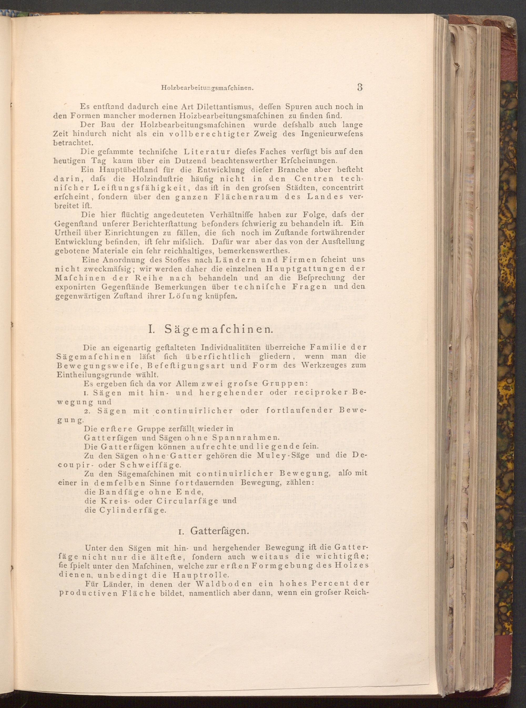 Unter den Sägen mit hin- und hergehender Bewegung ift die Gatterfäge nicht nur die ältefte, fondern auch weitaus die wichtigfte; fie ſpielt unter den Mafchinen, welche zur erften Formgebung des Holzes dienen, unbedingt die Hauptrolle.