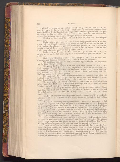 Keine einzige franzöfifche Firma pflegt jedoch die von Boileau angegebene Combination von zwei in einer Ebene über einanderrotirenden Kreisfägen zum Schneiden grofser Blöcke, eine Idee, welche in den mittleren und weftlichen Staaten Nordamerikas eine fabelhaft ausgedehnte Anwendung erfahren hat.