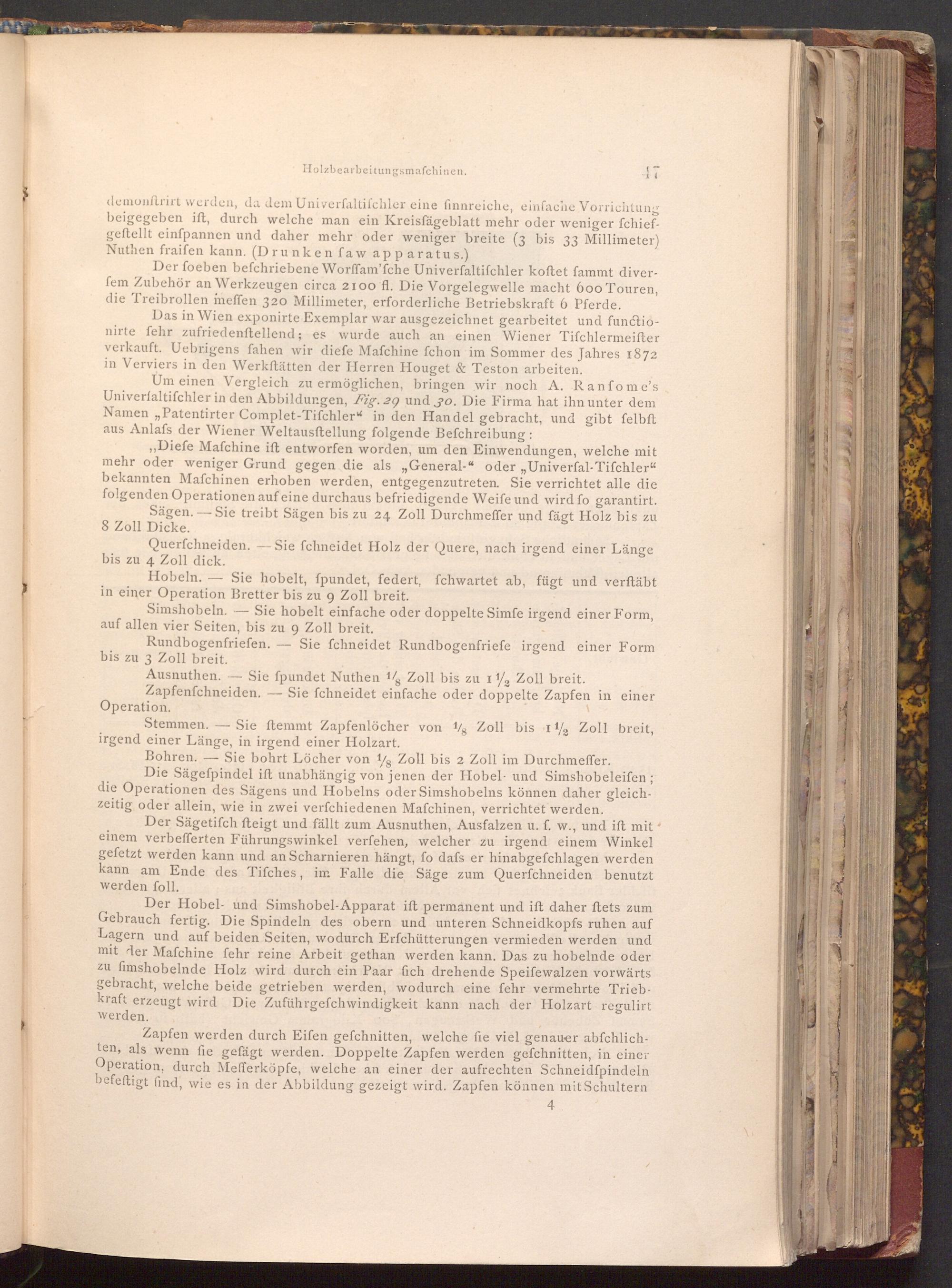 Um einen Vergleich zu ermöglichen, bringen wir noch A. Ranfome's Univerfaltifchler in den Abbildungen, Fig. 29 und 30. Die Firma hat ihn unter dem Namen ,, Patentirter Complet- Tifchler" in den Handel gebracht, und gibt felbft aus Anlafs der Wiener Weltausftellung folgende Befchreibung: