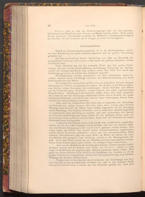 Nächft der Schraubenfchneidmafchine ift es die Hobelmafchine, welche feit ihrer Einführung das meifte Auffehen gemacht und die gröfste Verbreitung gefunden hat.
