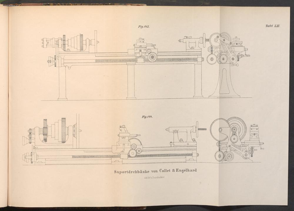 of wwwwww Fig.143. Fig.144. о Suportdrehbänke von Collet& Engelhard kk Hof- u Staasdruckerei. Tafel LXI.