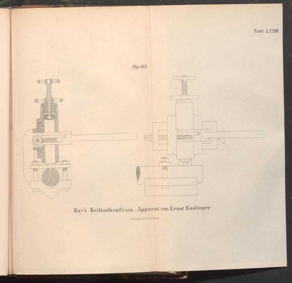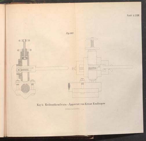 Fig.163. 0 Kay's Keilnuthenfrais- Apparat von Ernst Esslinger K.k.Hof- u. Staatsdruckerei. Tafel LXXIII.