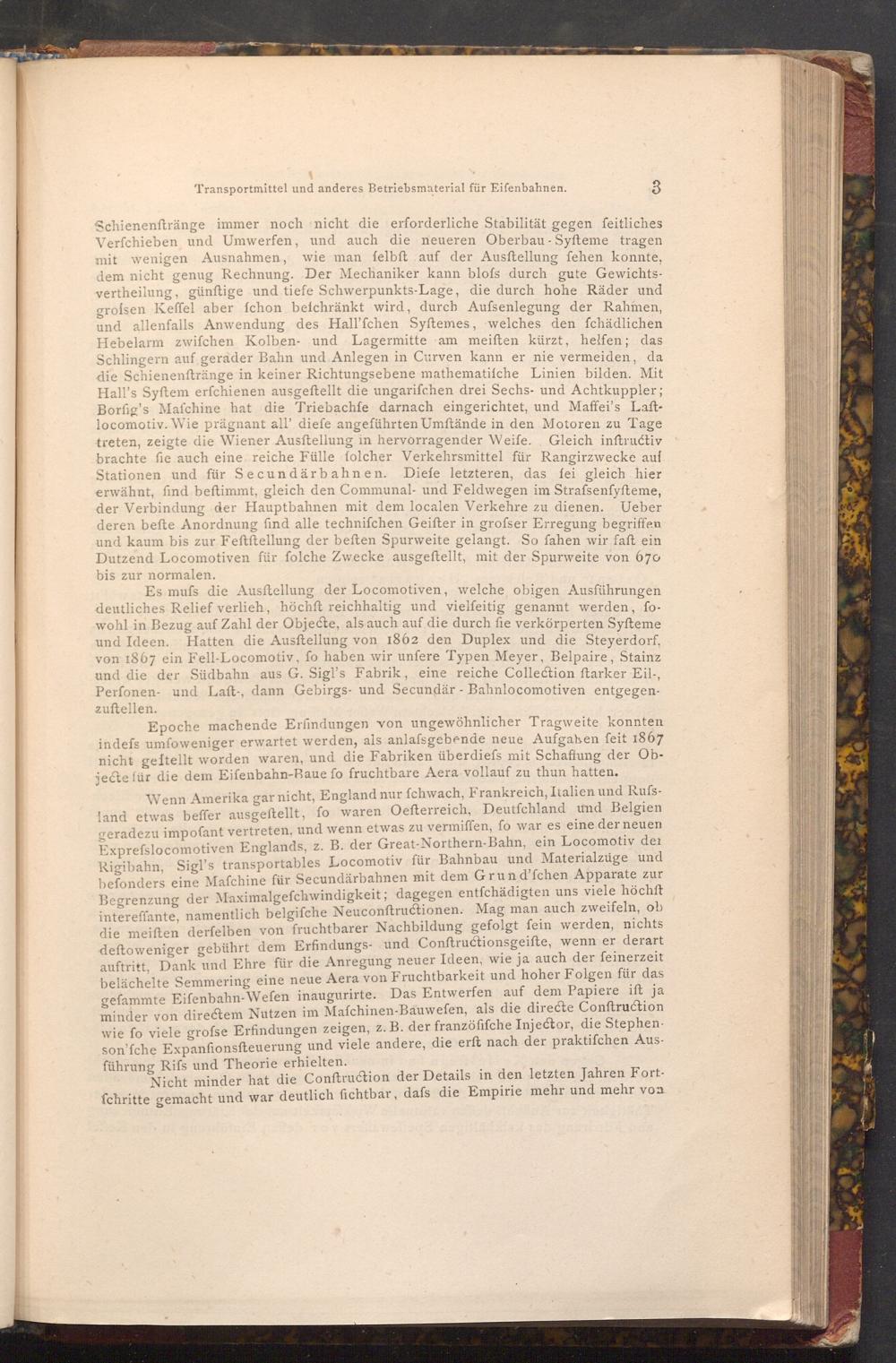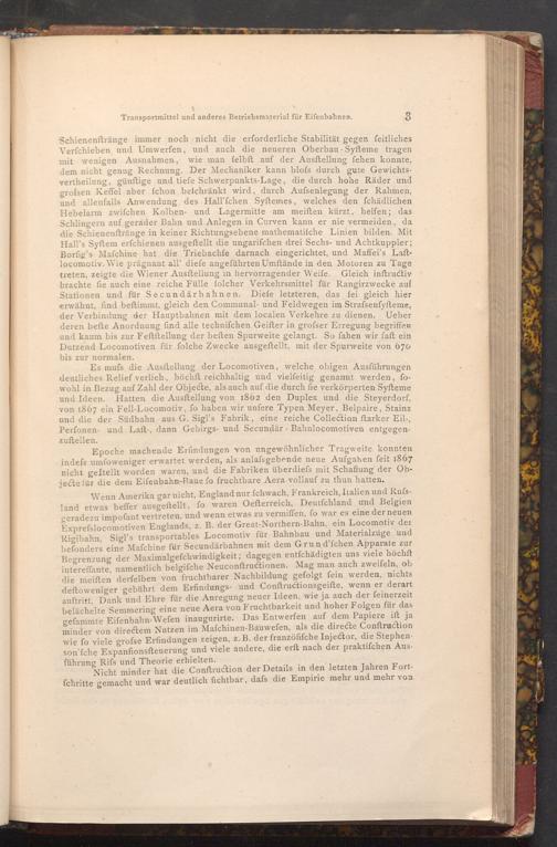 Es muss die Ausstellung der Locomotiven, welche obigen Ausführungen deutliches Relief verlieh, höchft reichhaltig und vielfeitig genannt werden, fowohl in Bezug auf Zahl der Objecte, als auch auf die durch fie verkörperten Syfteme und Ideen. Hatten die Ausftellung von 1862 den Duplex und die Steyerdorf, von 1867 ein Fell- Locomotiv, fo haben wir unfere Typen Meyer, Belpaire, Stainz und die der Südbahn aus G. Sigl's Fabrik, eine reiche Collection ftarker Eil-, Perfonen- und Laft, dann Gebirgs- und Secundär Bahnlocomotiven entgegenzuftellen.