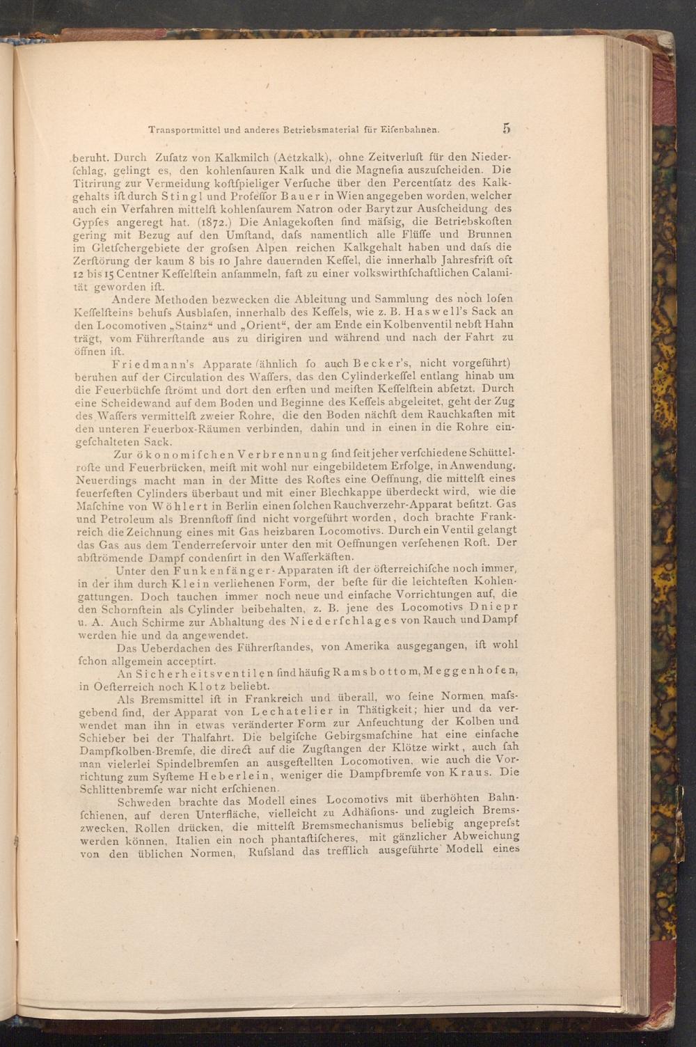 beruht. Durch Zufatz von Kalkmilch( Aetzkalk), ohne Zeitverluft für den Niederfchlag, gelingt es, den kohlenfauren Kalk und die Magnefia auszufcheiden. Die Titrirung zur Vermeidung koftfpieliger Verfuche über den Percentfatz des Kalkgehalts ift durch Stingl und Profeffor Bauer in Wien angegeben worden, welcher auch ein Verfahren mittelft kohlenfaurem Natron oder Baryt zur Ausfcheidung des Gypfes angeregt hat.( 1872.) Die Anlagekoften find mäfsig, die Betriebskoften gering mit Bezug auf den Umftand, dafs namentlich alle Flüffe und Brunnen im Gletſchergebiete der grofsen Alpen reichen Kalkgehalt haben und dafs die Zerftörung der kaum 8 bis 10 Jahre dauernden Keffel, die innerhalb Jahresfrift oft 12 bis 15 Centner Keffelftein anfammeln, faft zu einer volkswirthfchaftlichen Calamität geworden ift.