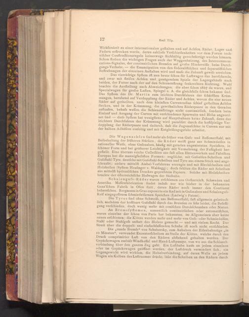 Die Tyres find ohne Schweifs, aus Beffemerftahl, faft allgemein gebräuchlich, nachdem der koftbare Gufsftahl durch das Bremfen zu fehr leidet, die Befeftigung verfchieden, doch wenig mehr mit conifchen Durchfchrauben oder Nieten.