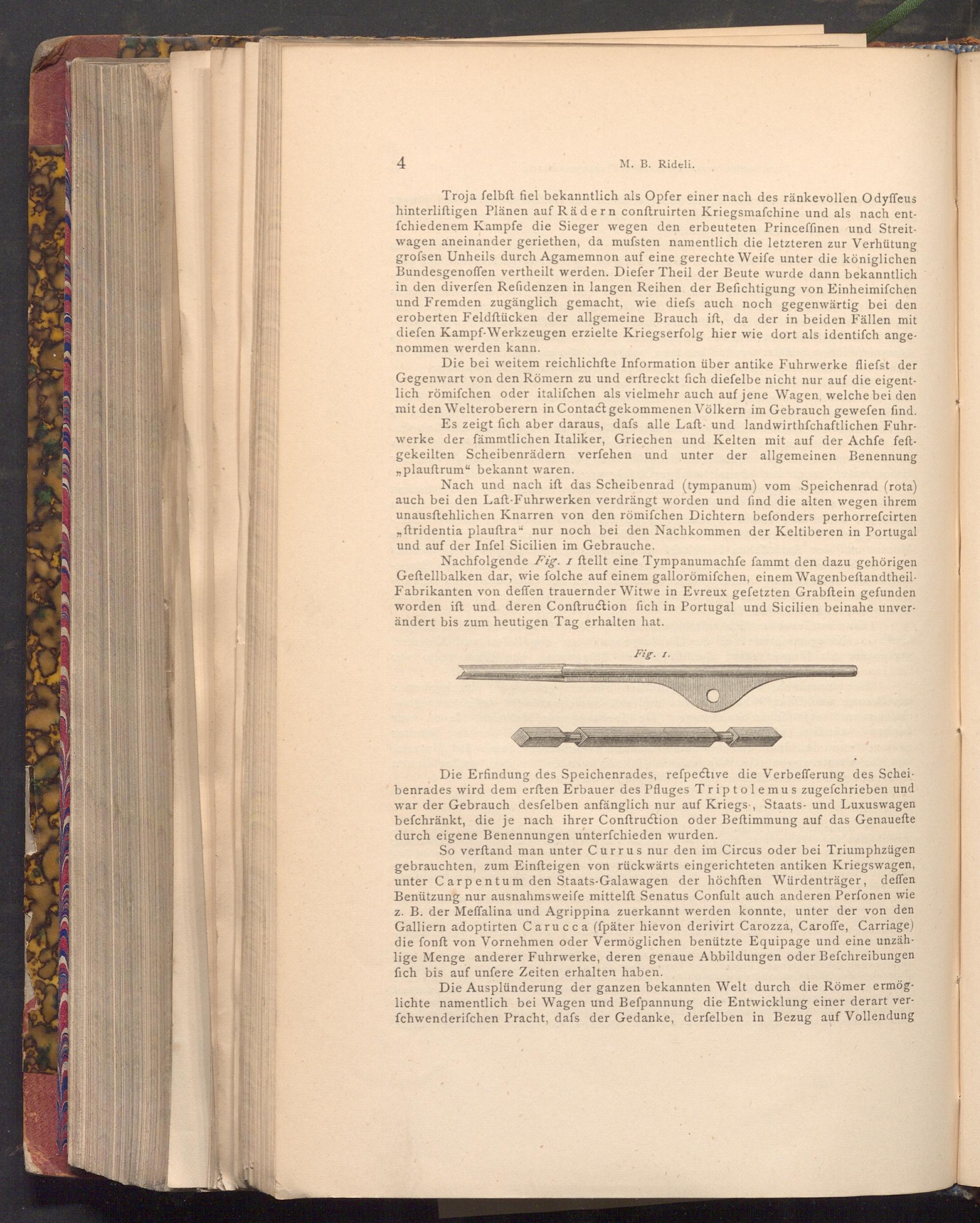 So verftand man unter Currus nur den im Circus oder bei Triumphzügen gebrauchten, zum Einfteigen von rückwärts eingerichteten antiken Kriegswagen, unter Carpentum den Staats- Galawagen der höchften Würdenträger, deffen Benützung nur ausnahmsweife mittelft Senatus Confult auch anderen Perfonen wie z. B. der Meffalina und Agrippina zuerkannt werden konnte, unter der von den Galliern adoptirten Carucca( fpäter hievon derivirt Carozza, Caroffe, Carriage) die fonft von Vornehmen oder Vermöglichen benützte Equipage und eine unzäh lige Menge anderer Fuhrwerke, deren genaue Abbildungen oder Befchreibungen fich bis auf unfere Zeiten erhalten haben.