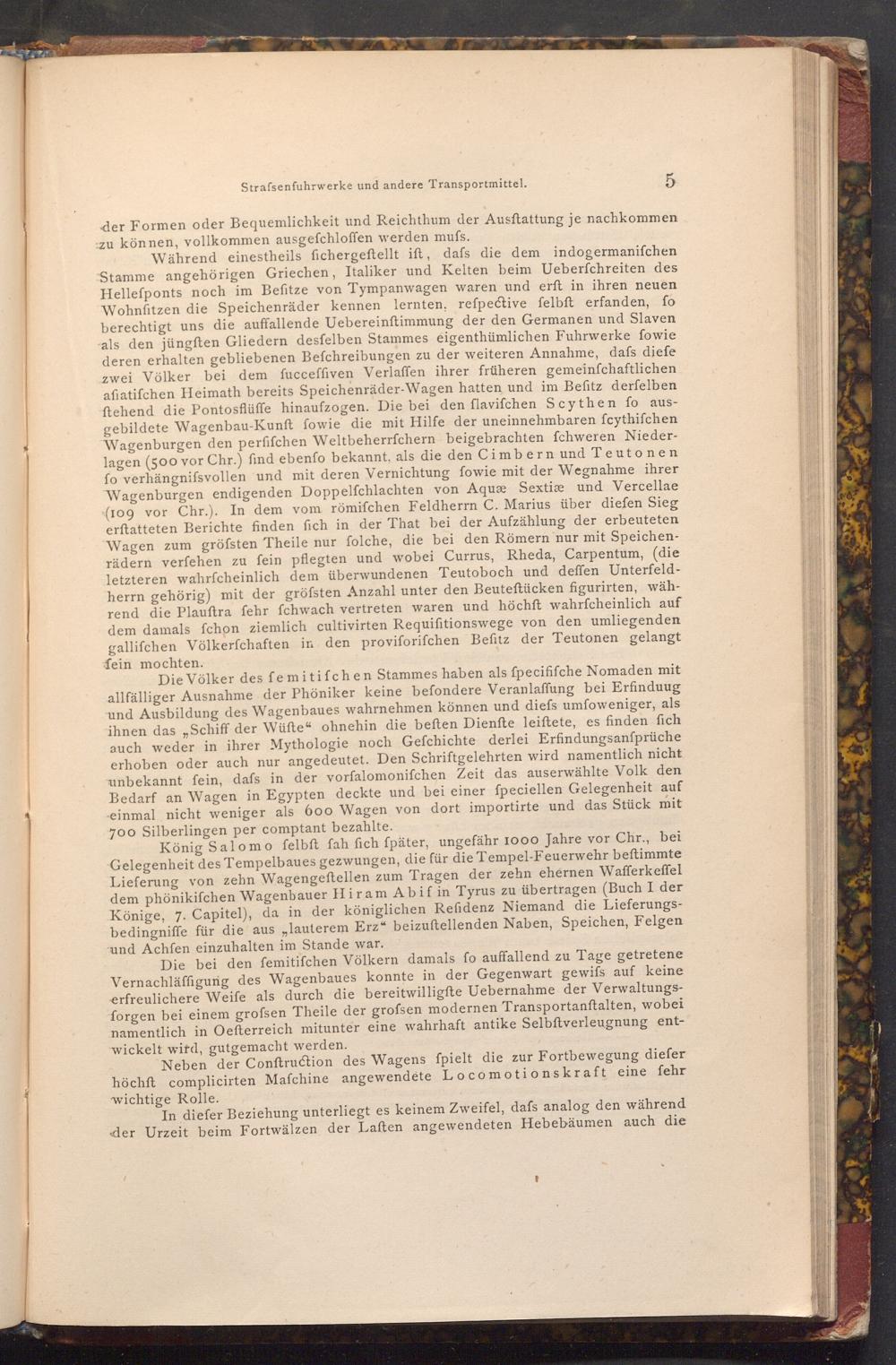 Die bei den femitifchen Völkern damals fo auffallend zu Tage getretene Vernachläffigung des Wagenbaues konnte in der Gegenwart gewifs auf keine erfreulichere Weife als durch die bereitwilligfte Uebernahme der Verwaltungsforgen bei einem grofsen Theile der grofsen modernen Transportanftalten, wobei namentlich in Oefterreich mitunter eine wahrhaft antike Selbſtverleugnung entwickelt wird, gutgemacht werden.