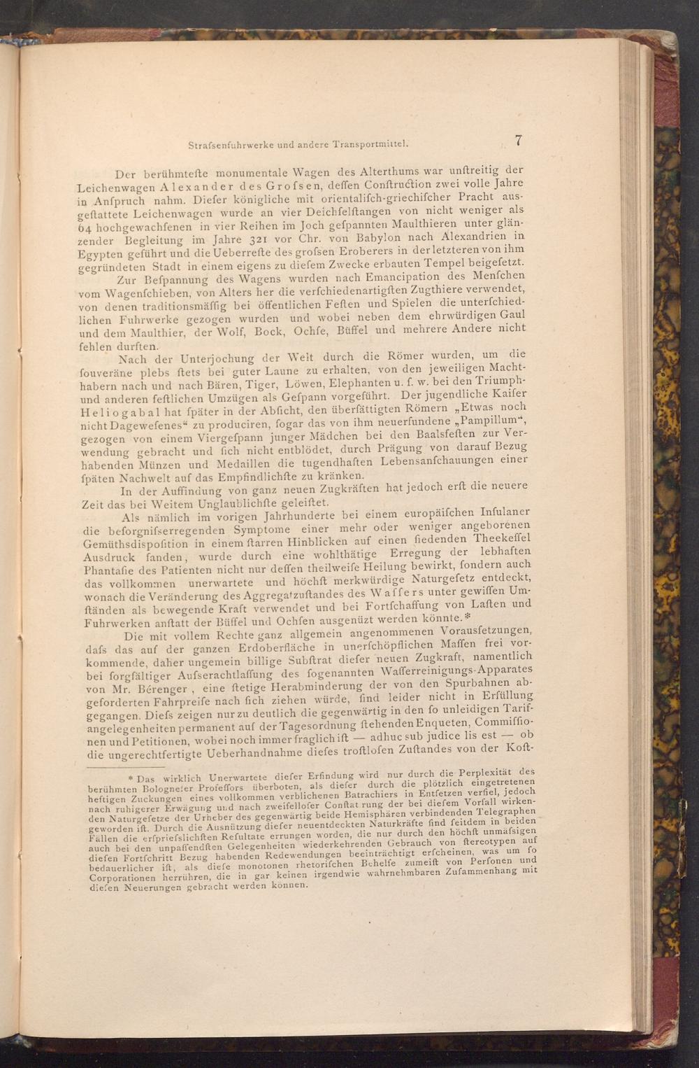 Die mit vollem Rechte ganz allgemein angenommenen Vorausfetzungen, dafs das auf der ganzen Erdoberfläche in unerfchöpflichen Maffen frei vorkommende, daher ungemein billige Subftrat diefer neuen Zugkraft, namentlich bei forgfältiger Aufserachtlaffung des fogenannten Wafferreinigungs- Apparates von Mr. Bérenger, eine ftetige Herabminderung der von den Spurbahnen abgeforderten Fahrpreife nach fich ziehen würde, find leider nicht in Erfüllung gegangen. Diefs zeigen nur zu deutlich die gegenwärtig in den fo unleidigen Tarifangelegenheiten permanent auf der Tagesordnung ftehenden Enqueten, Commiffionen und Petitionen, wobei noch immer fraglich ift adhuc sub judice lis est ob die ungerechtfertigte Ueberhandnahme diefes troftlofen Zuftandes von der Koft