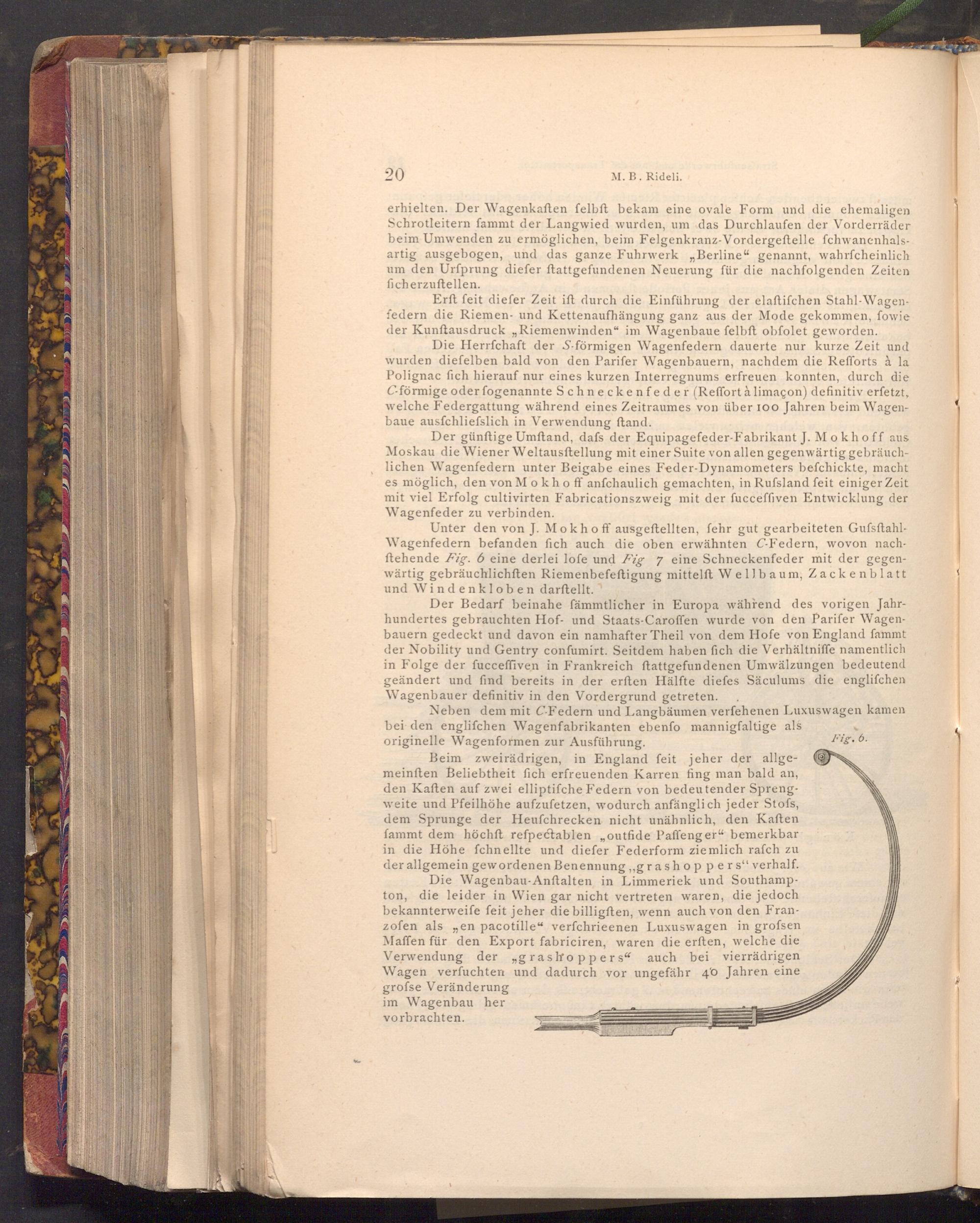Der günftige Umftand, dafs der Equipagefeder- Fabrikant J. Mokhoff aus Moskau die Wiener Weltausftellung mit einer Suite von allen gegenwärtig gebräuchlichen Wagenfedern unter Beigabe eines Feder- Dynamometers befchickte, macht es möglich, den von Mokho ff anfchaulich gemachten, in Rufsland feit einiger Zeit mit viel Erfolg cultivirten Fabricationszweig mit der fucceffiven Entwicklung der Wagenfeder zu verbinden.