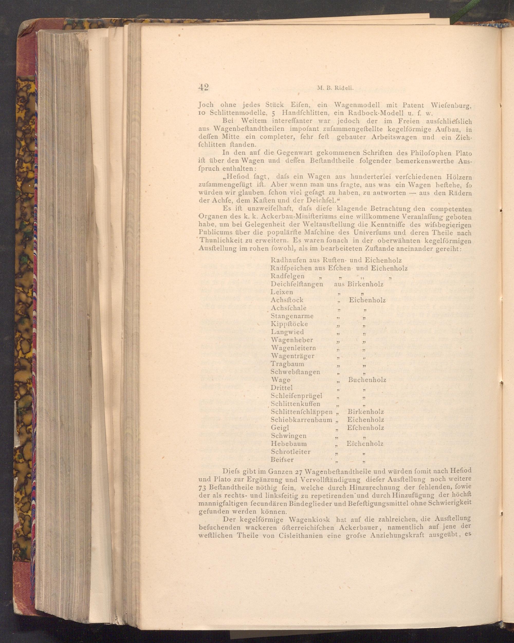 Diefs gibt im Ganzen 27 Wagenbeftandtheile und würden fomit nach Hefiod und Plato zur Ergänzung und Vervollſtändigung diefer Ausftellung noch weitere 73 Beftandtheile nöthig fein, welche durch Hinzurechnung der fehlenden, fowie der als rechts- und linksfeitig zu repetirenden und durch Hinzufügung der höchft mannigfaltigen fecundären Bindeglieder und Befeftigungsmittel ohne Schwierigkeit gefunden werden können.