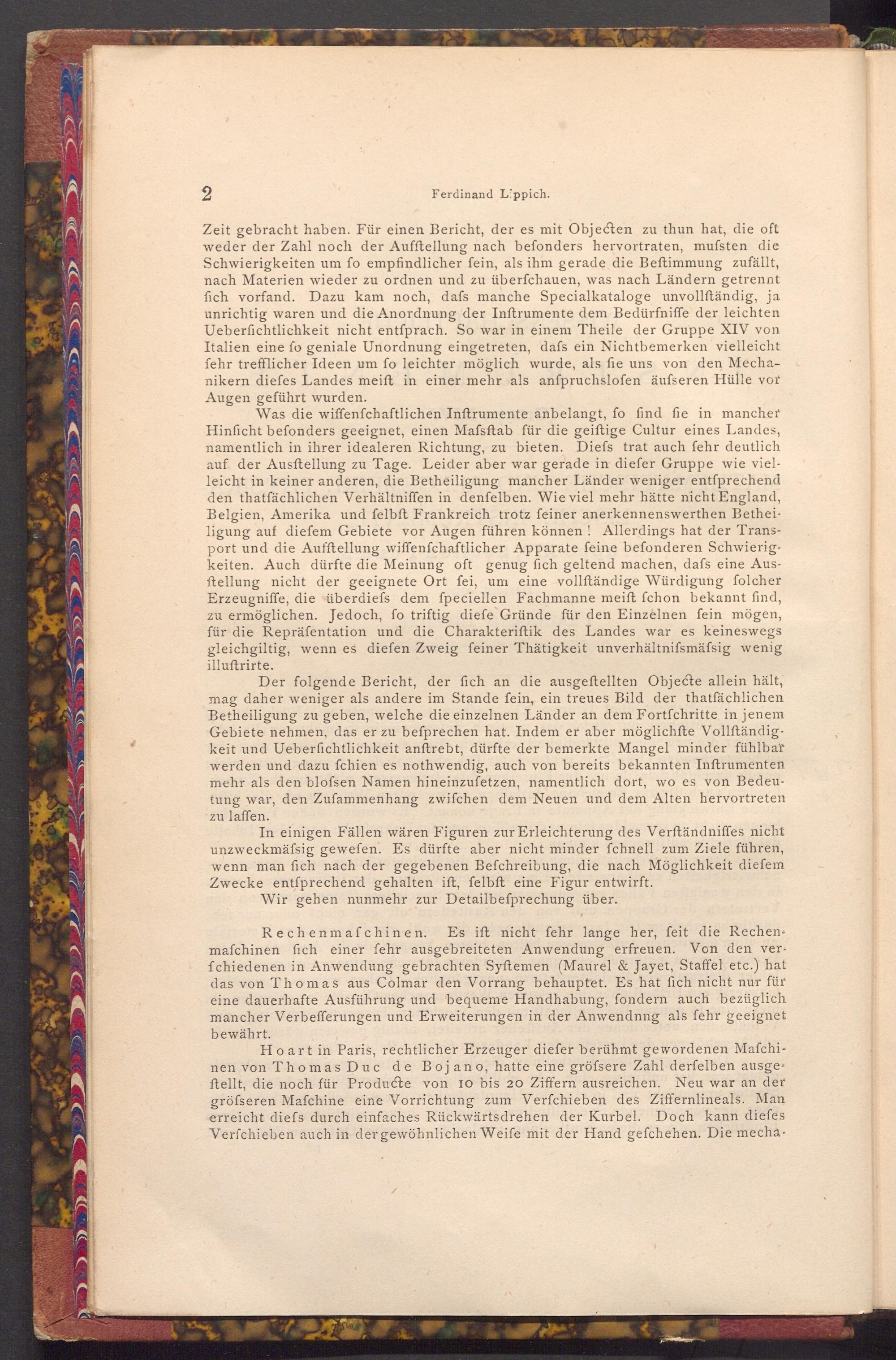 Hoart in Paris, rechtlicher Erzeuger diefer berühmt gewordenen Mafchinen von Thomas Duc de Bojano, hatte eine gröfsere Zahl derfelben ausgeftellt, die noch für Producte von 10 bis 20 Ziffern ausreichen. Neu war an der gröfseren Mafchine eine Vorrichtung zum Verfchieben des Ziffernlineals. Man erreicht diefs durch einfaches Rückwärtsdrehen der Kurbel. Doch kann diefes Verfchieben auch in der gewöhnlichen Weife mit der Hand gefchehen. Die mecha