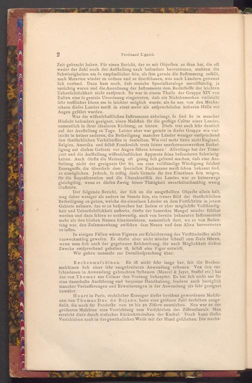 Rechenmafchinen. Es ift nicht fehr lange her, feit die Rechenmafchinen fich einer fehr ausgebreiteten Anwendung erfreuen. Von den verfchiedenen in Anwendung gebrachten Syftemen( Maurel& Jayet, Staffel etc.) hat das von Thomas aus Colmar den Vorrang behauptet. Es hat fich nicht nur für eine dauerhafte Ausführung und bequeme Handhabung, fondern auch bezüglich mancher Verbefferungen und Erweiterungen in der Anwendnng als fehr geeignet bewährt.